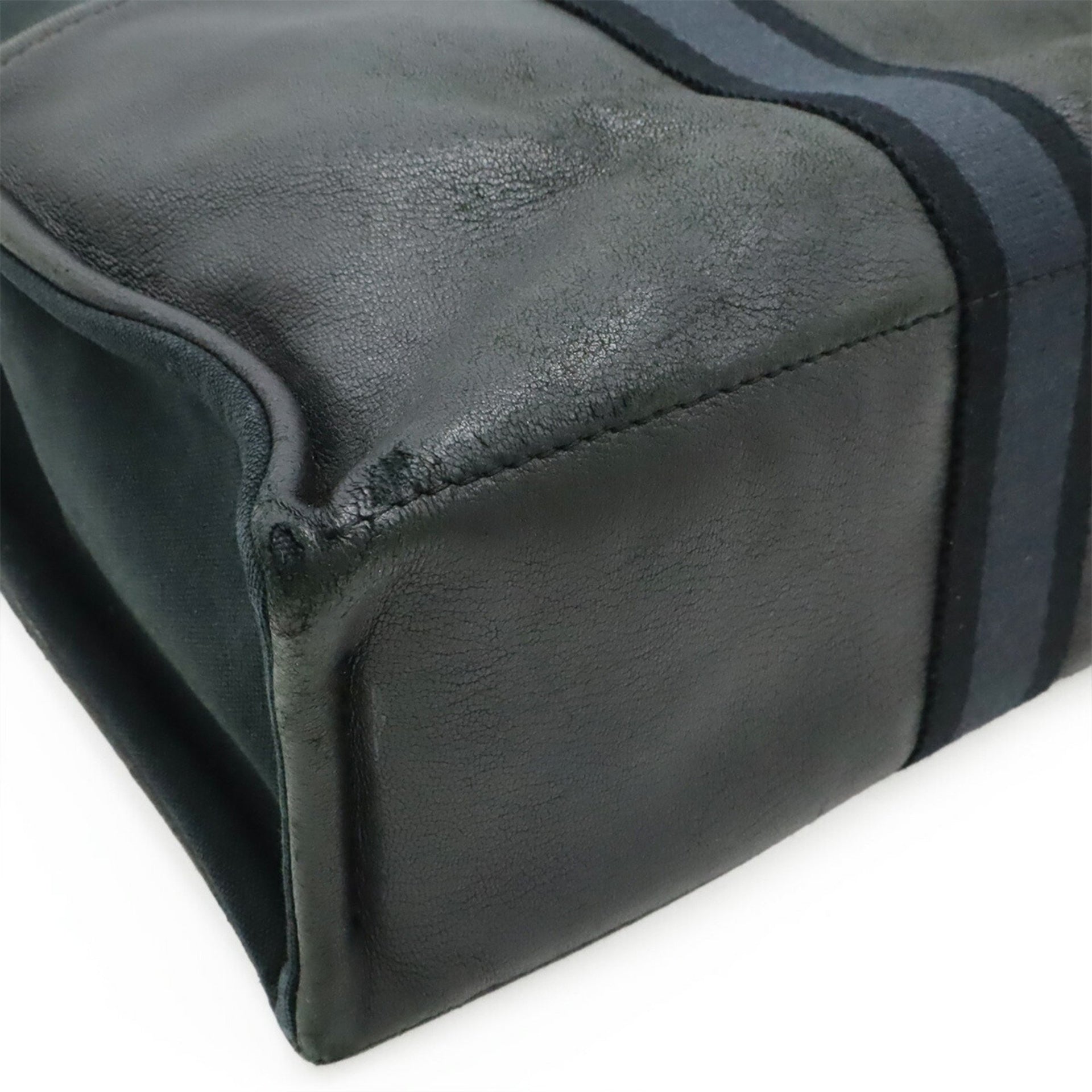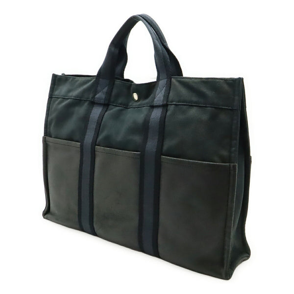 HERMES Hermès Foule Tote MM Half Leather Bag Handbag Canvas Black