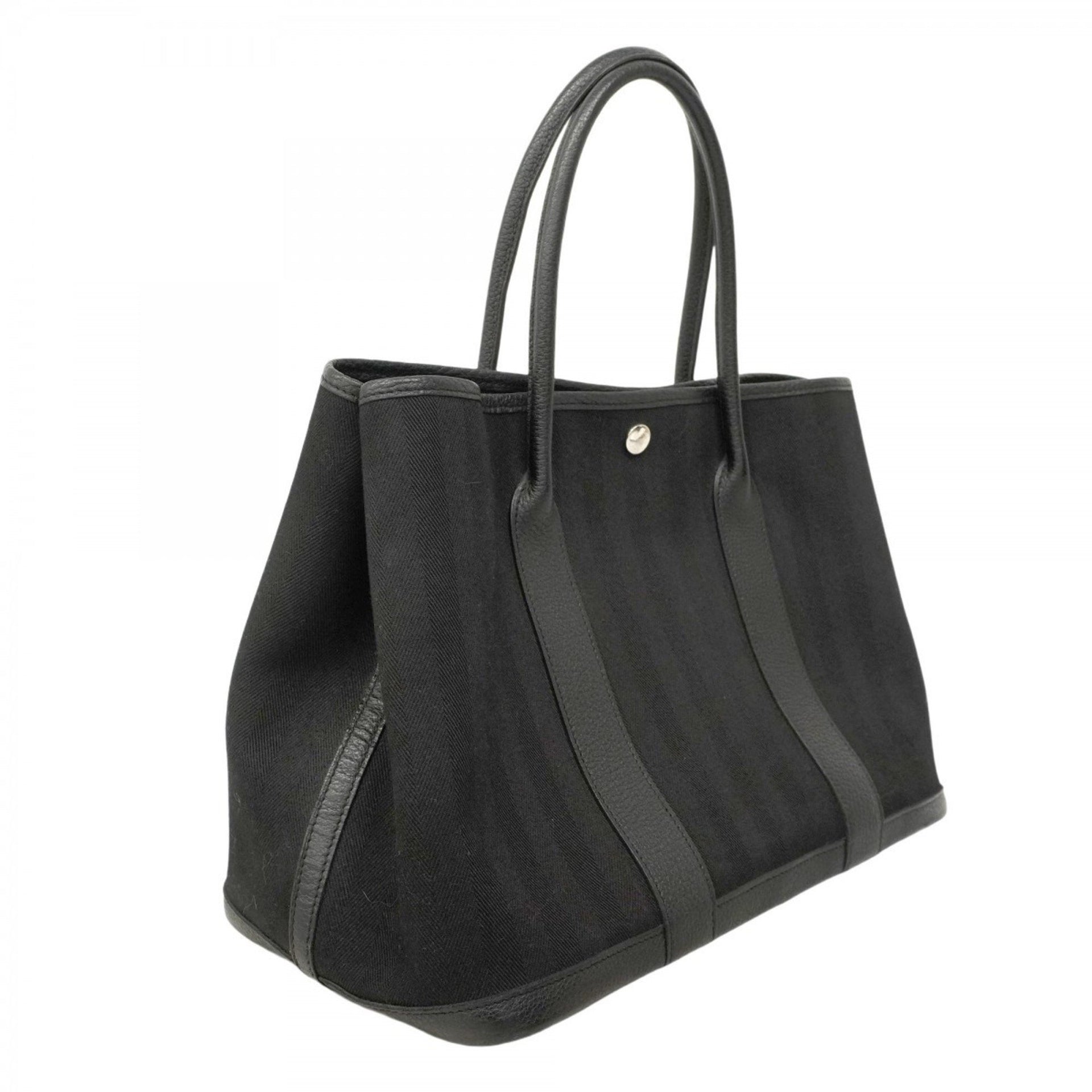 Hermes Hermès Garden PM Tote Bag, Toile Chevron, Black, X Stamp, Women\'s