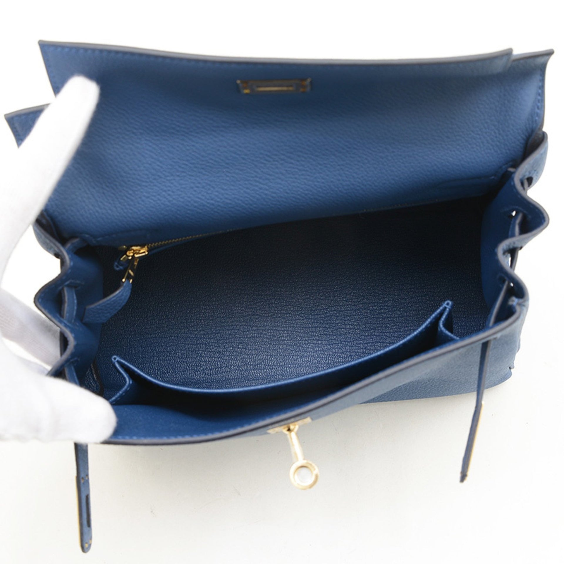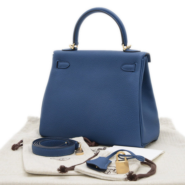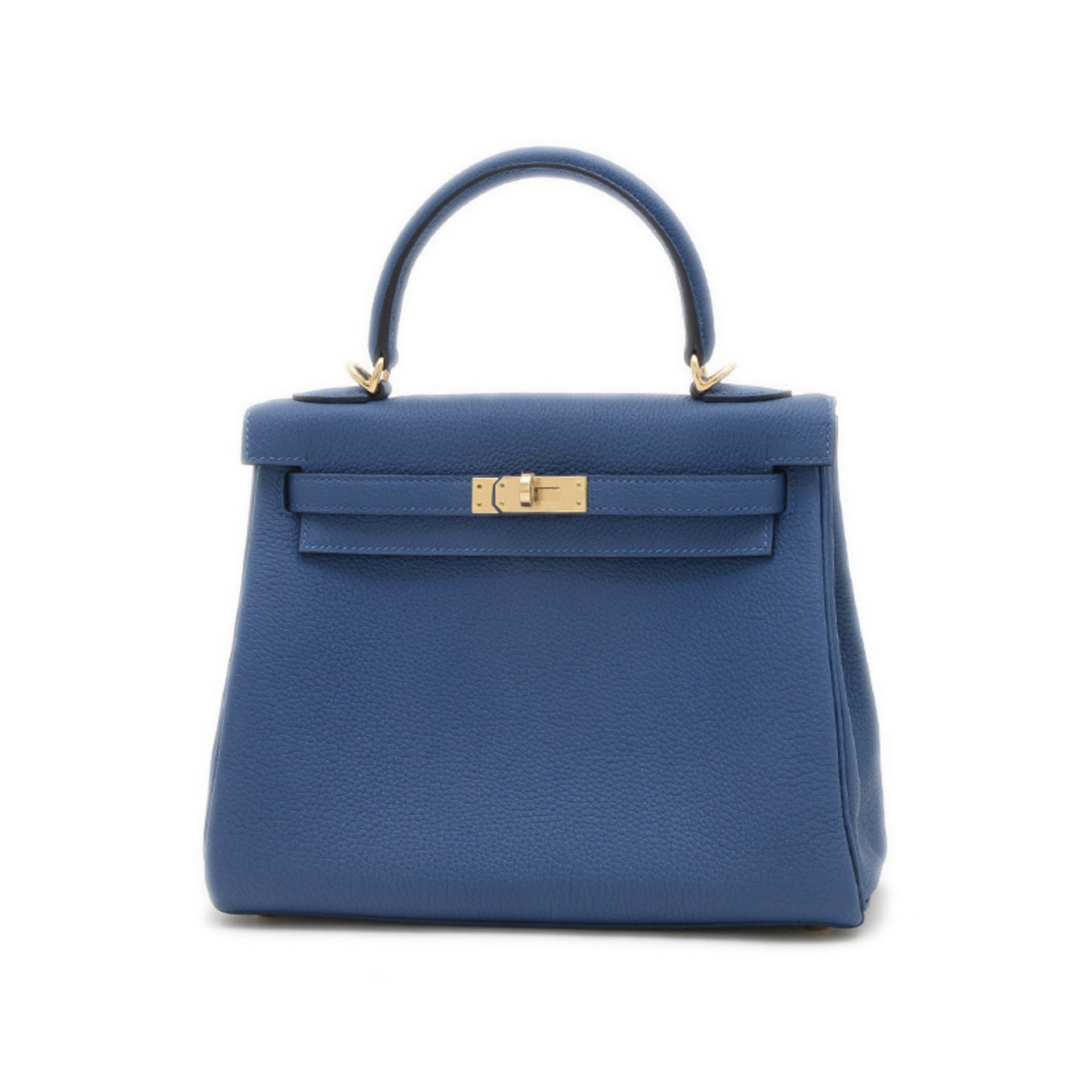 Hermes Hermès Kelly 25 Handbag with Togo Blue Tie, Gold Hardware, K Stamp, BP