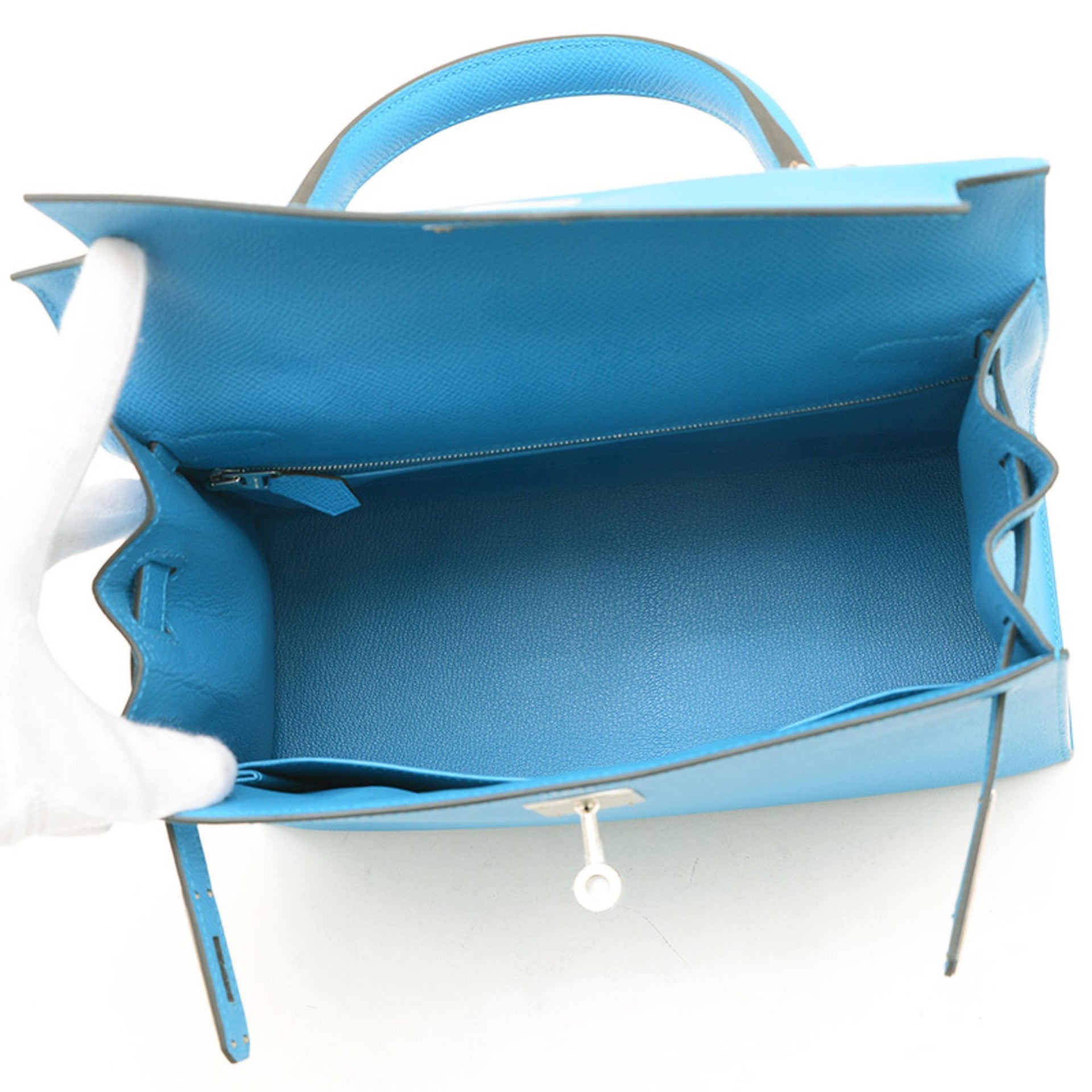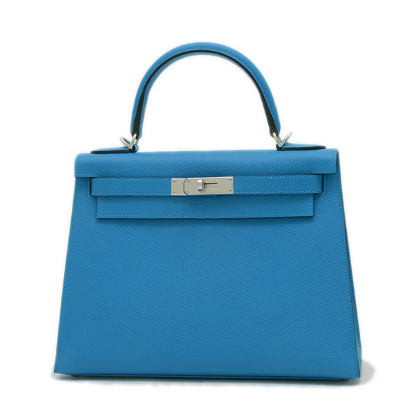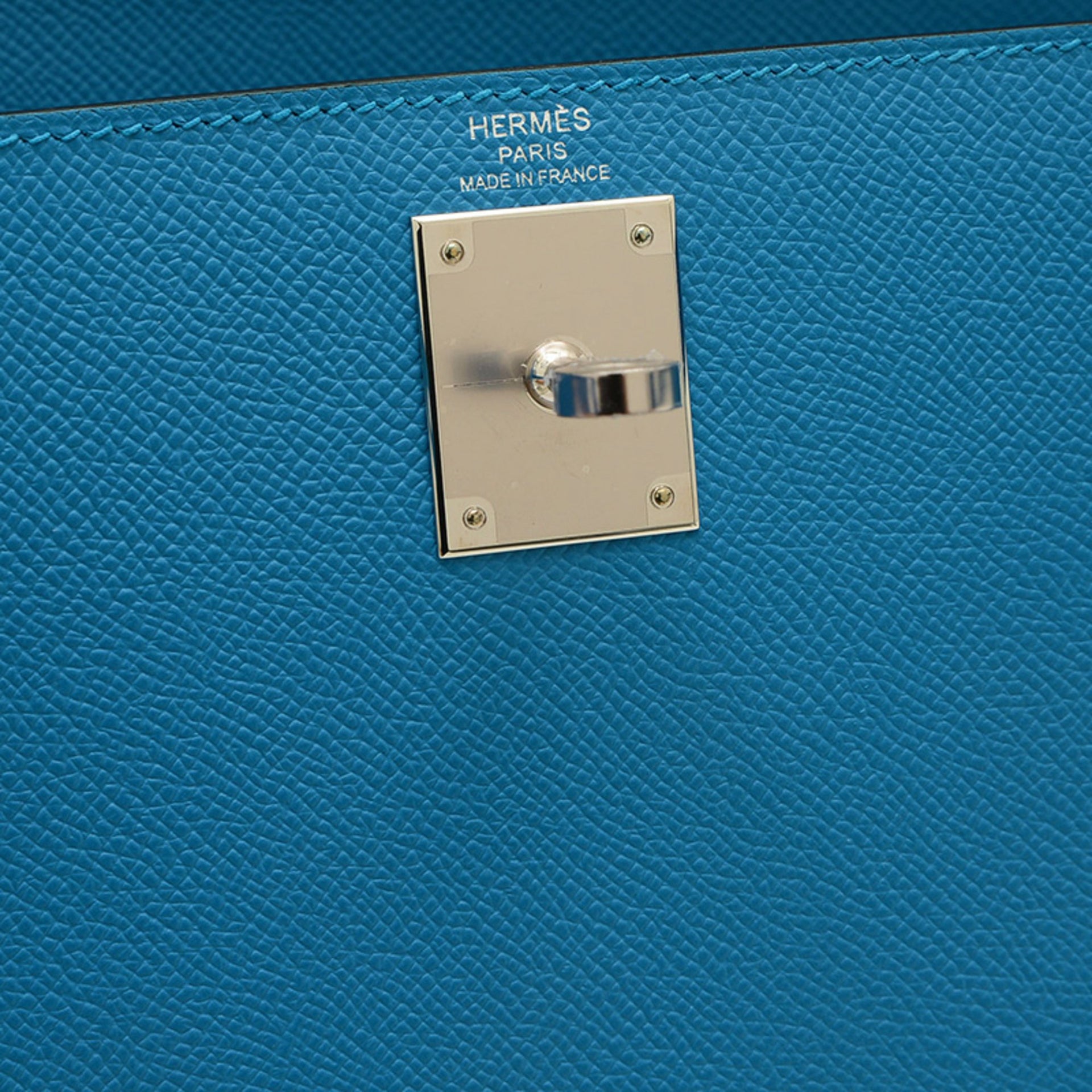 Hermes Hermès Kelly 28 Handbag, Outer Stitch, Epson Blue Zanzibar, Silver Hardware, W Stamp, BP