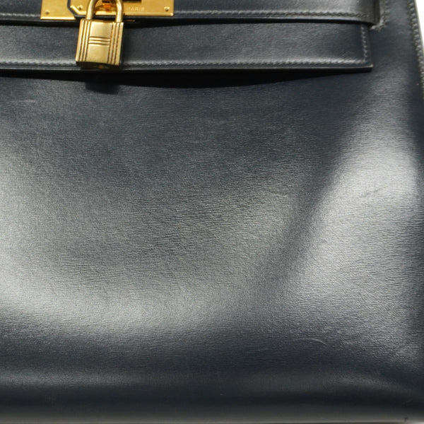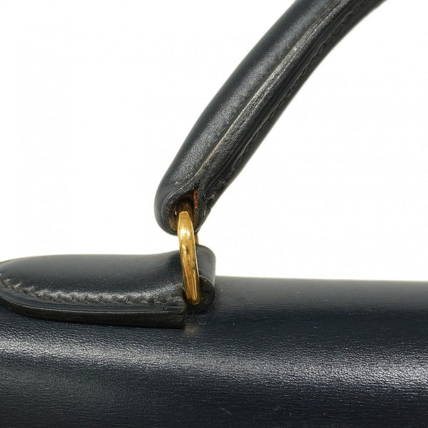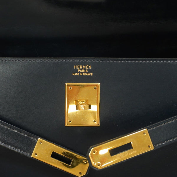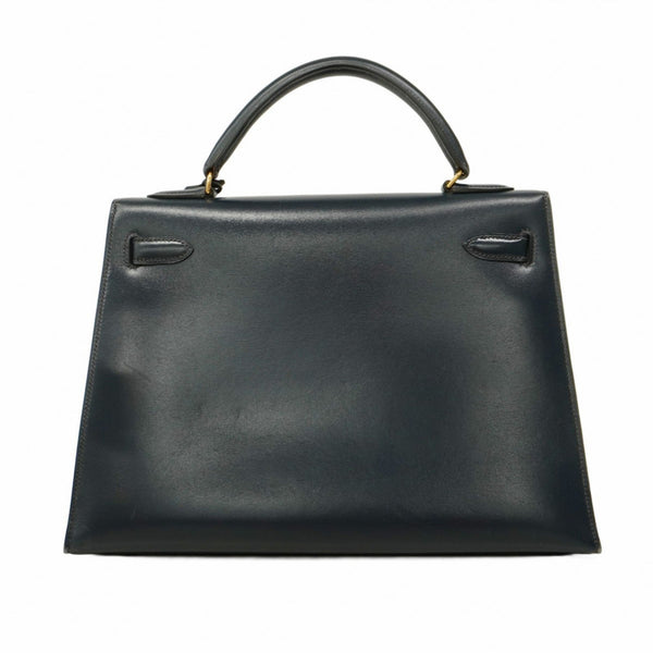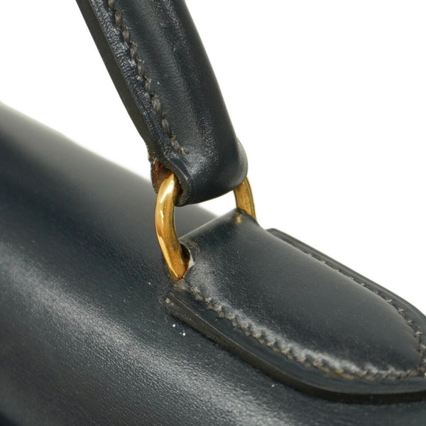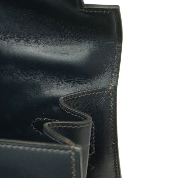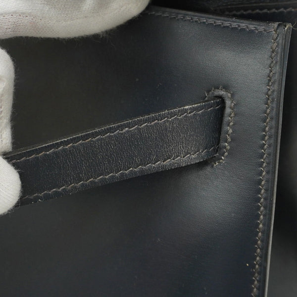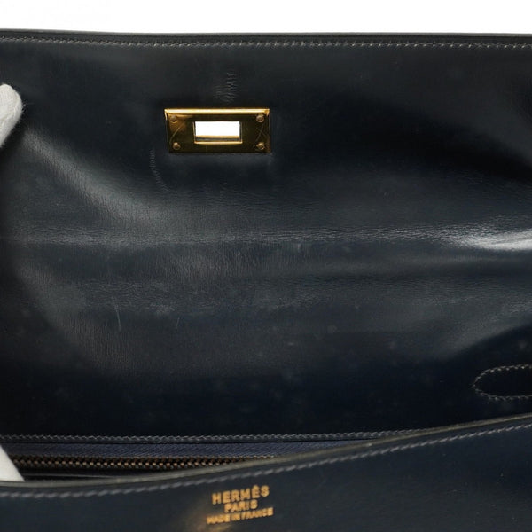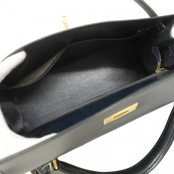 Hermes Hermès Kelly 32 Handbag in Navy Box Calf Leather with \"M\" Stamp for Women