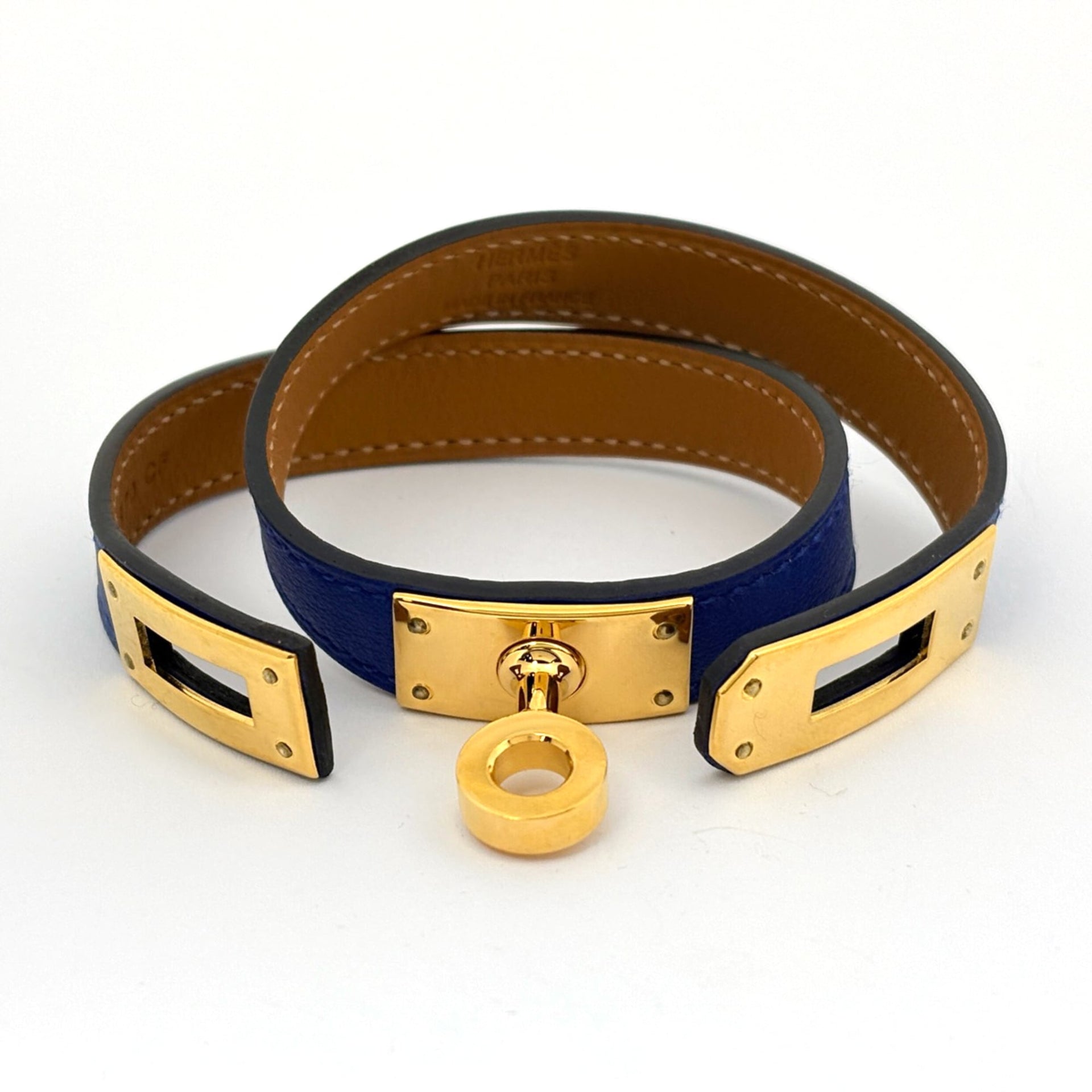 Hermes Hermès Kelly Double Tour Bracelet, 2-Row Swift Leather, Blue Electric, Women\'s