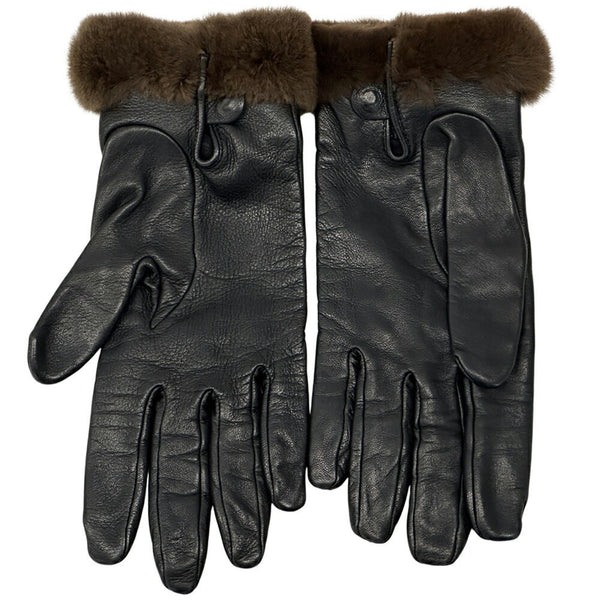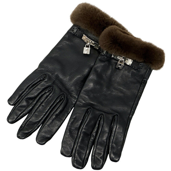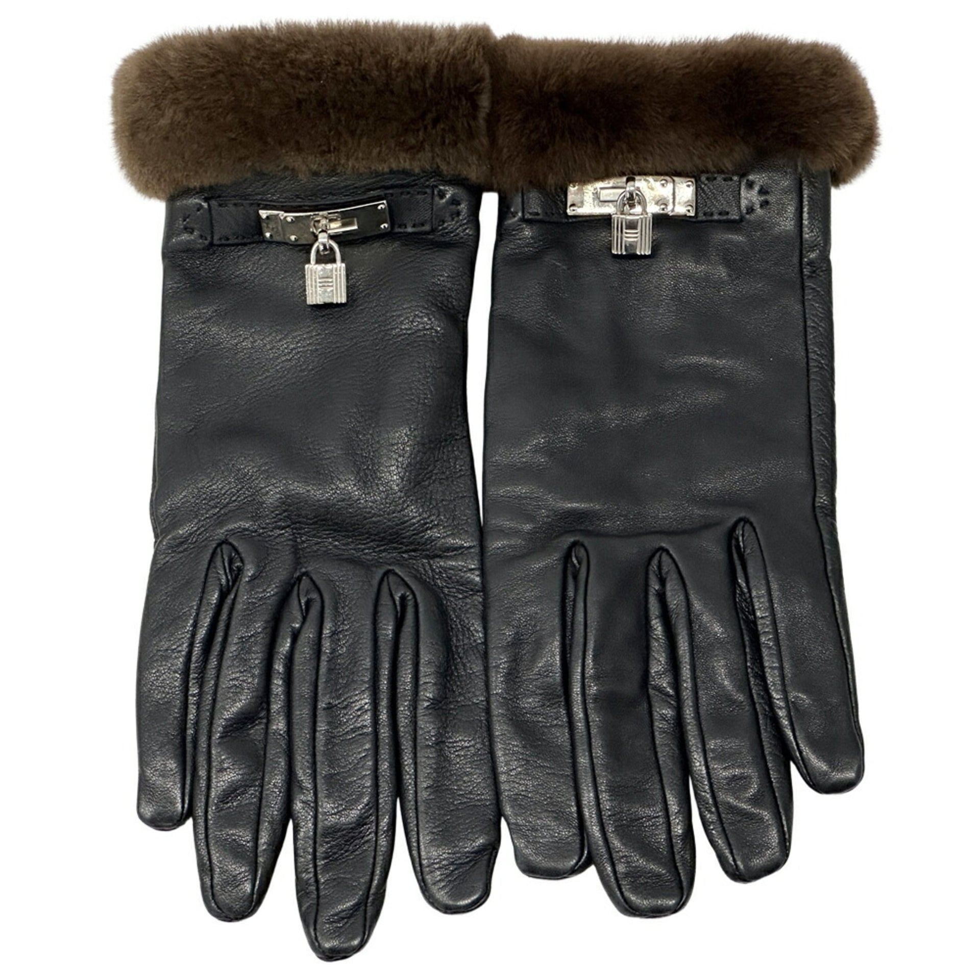 Hermes Hermès Kelly Gloves for Women, Leather, Silk, Mink, Black, Brown, Fur, Padded Cadena