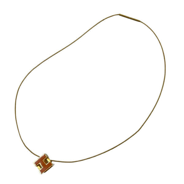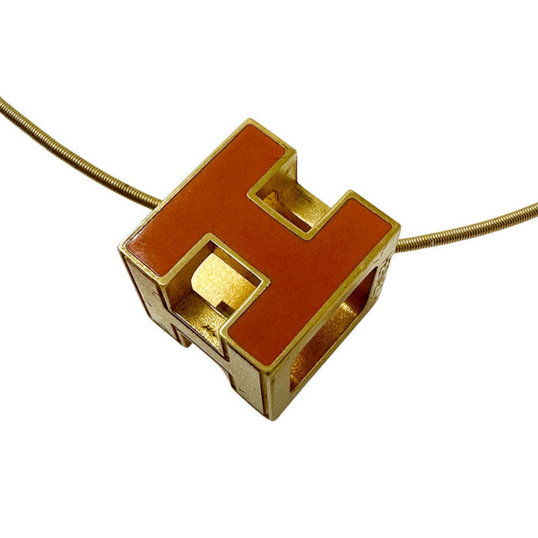 Hermes Hermès Necklace, Cage d\'Ache H Cube, Women\'s, Metal, Orange and Gold, Pendant