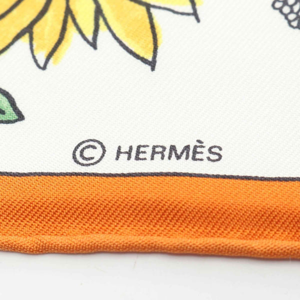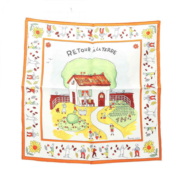 Hermes Hermès Petit Carré 45 RETOUR A LA TERRE Silk Scarf for Women, White, Orange, and Multicolor