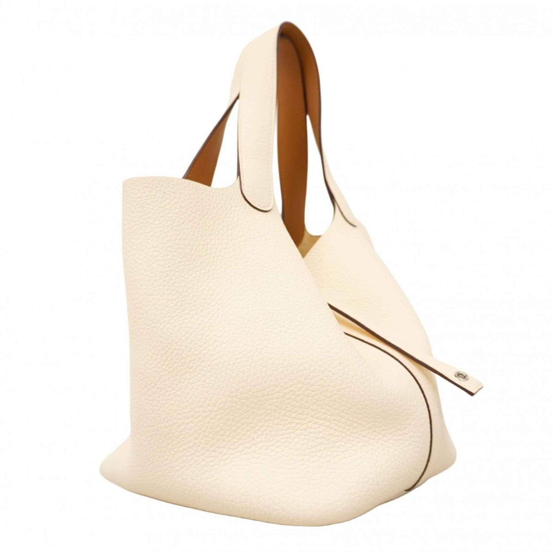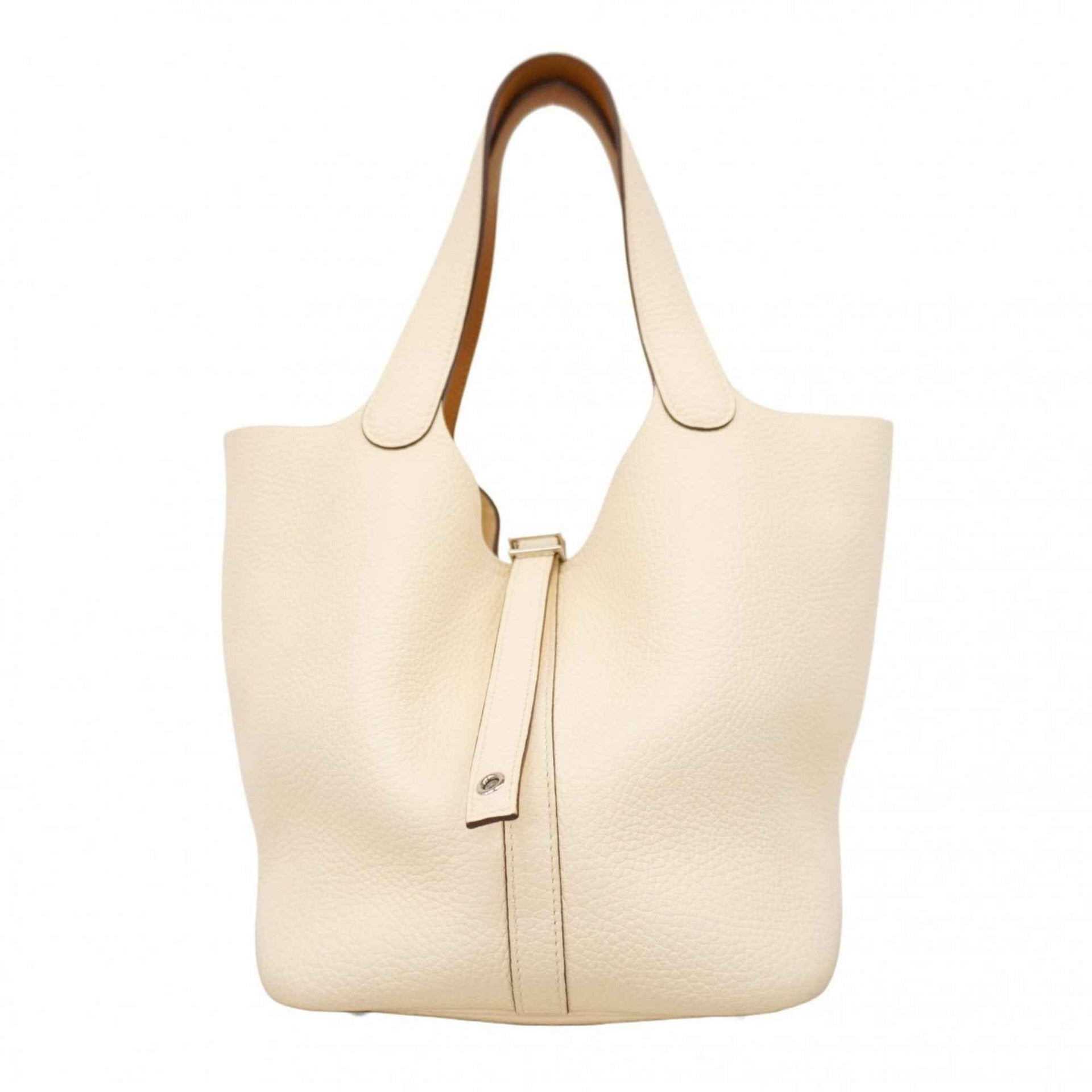 Hermes Hermès Picotin Lock Eclat MM Handbag in Taurillon Clemence Nata Sesame with Z Stamp for Women