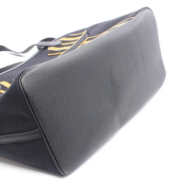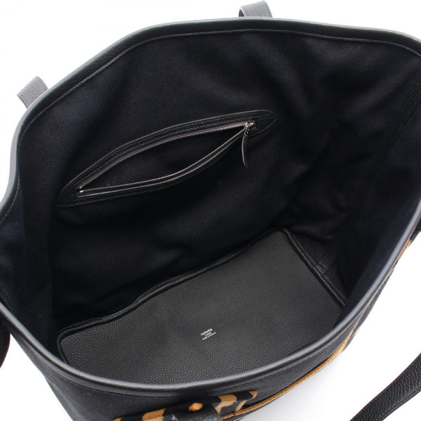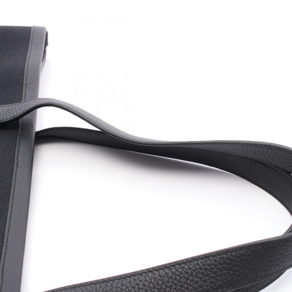 Hermes Hermès Pur Sangle Tote Bag, Canvas and Leather, Toile Militaire / Taurillon Clemence Militaire, Women\'s, Black/Brown