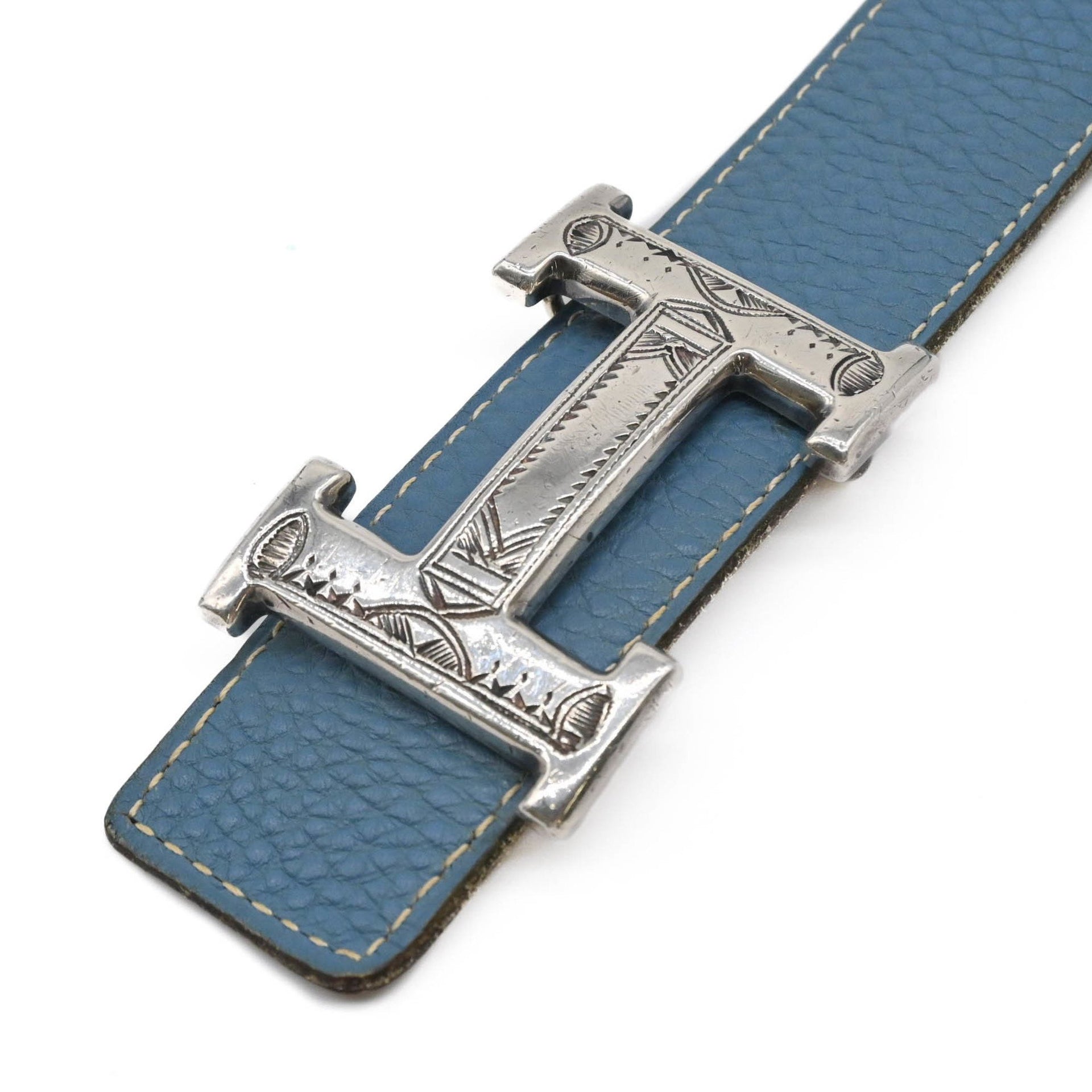 HERMES Hermes Touareg Constance Belt Bicolor Box Calf Taurillon Clemence Blue Jean Black □H #85
