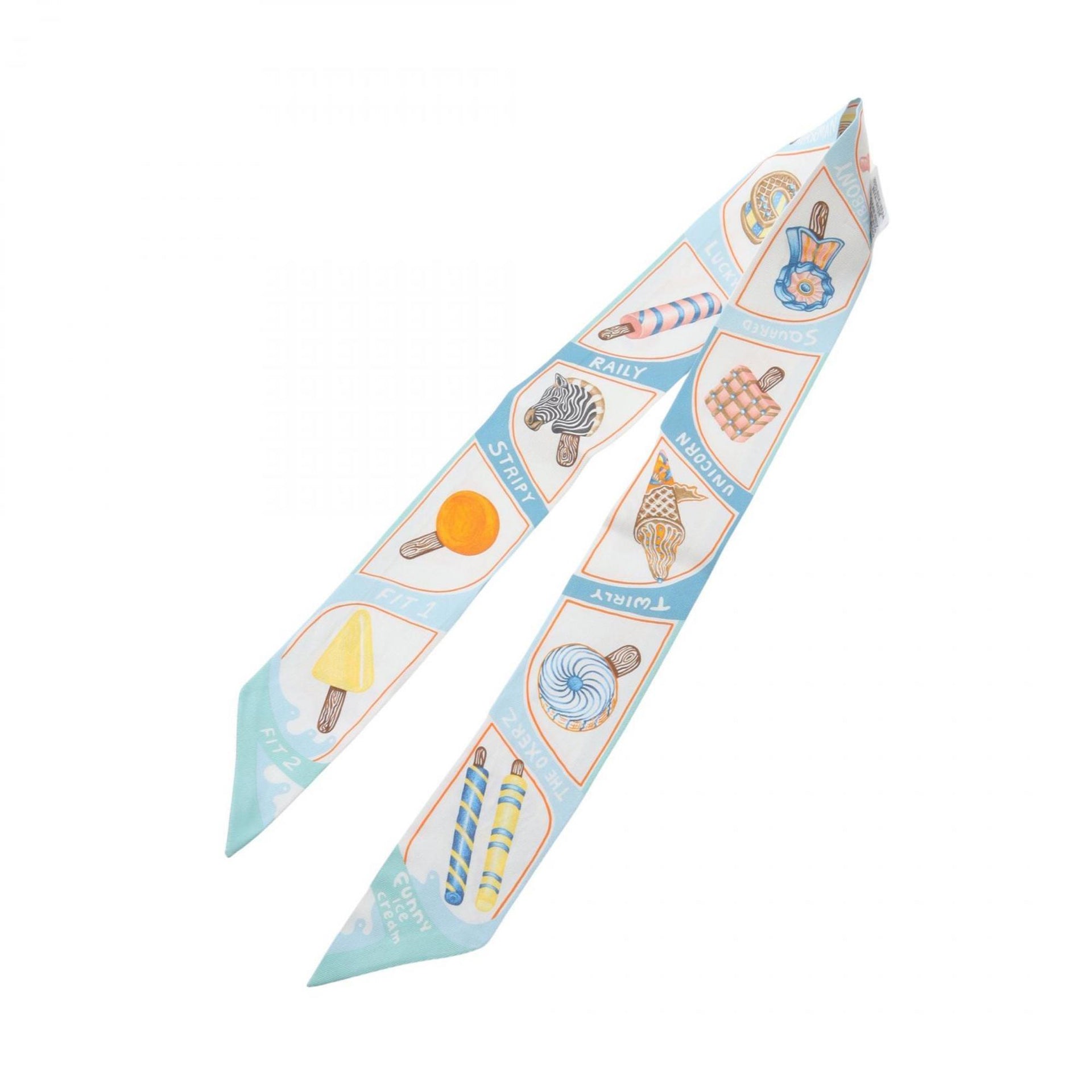 Hermes Hermès Twilly Funny Ice Cream Silk Scarf for Women in Multicolor Blue