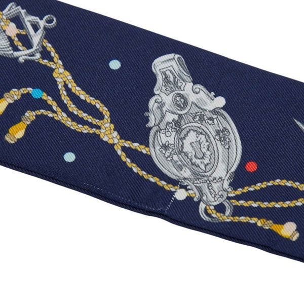 Hermes Hermès Twilly Les Cles a Pois Scarf, Navy Multicolor Silk, Women\'s