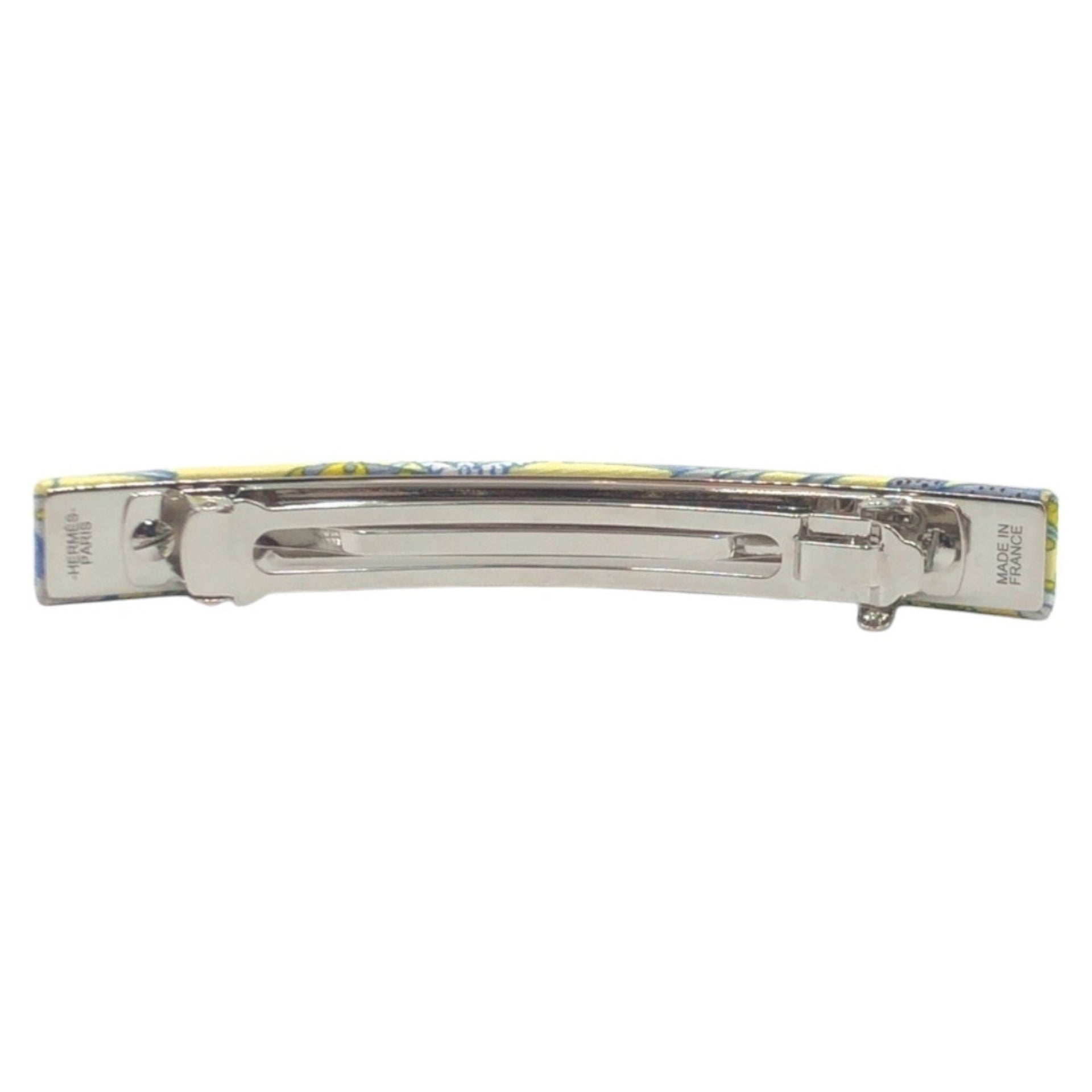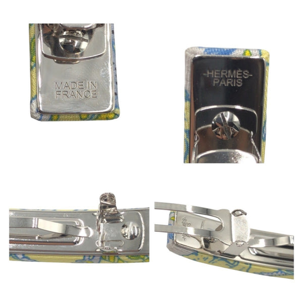 HERMES Hermes Yellow Light Blue Silver Hardware Silk Barrette Hair Accessory for Women