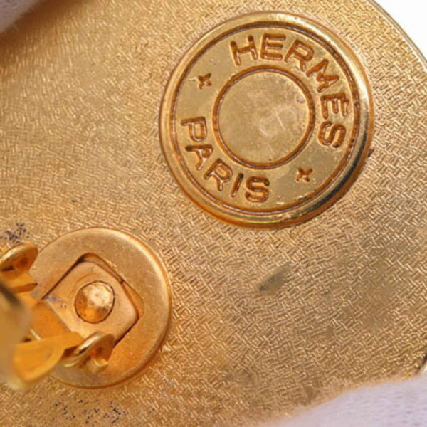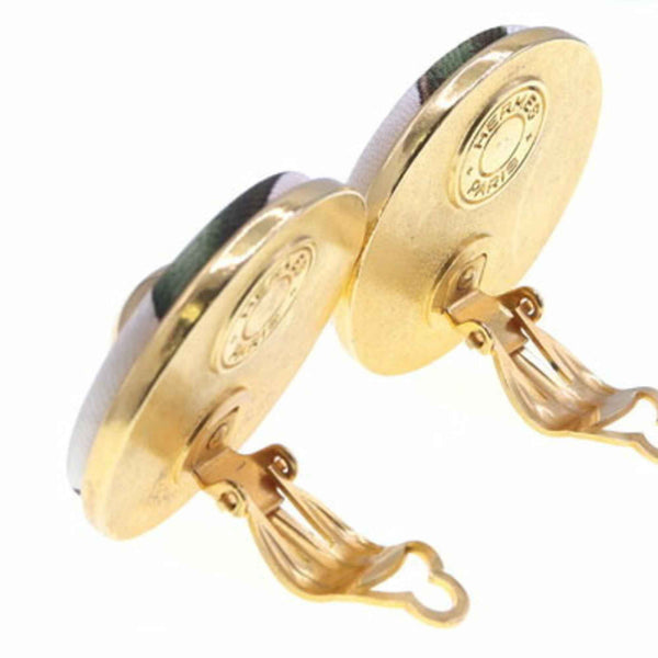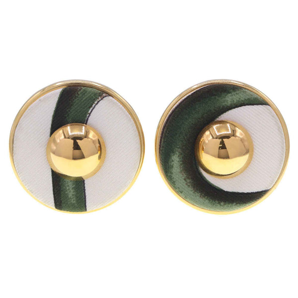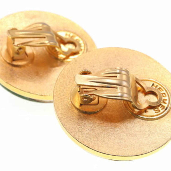 Hermes Ivory Green Metal Round Earrings for Women