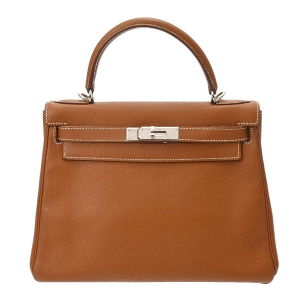 HERMES Kelly 28, Inner Stitching, 2-Way, Gold, L Stamp (circa 2008), Women\'s Togo Handbag, AB Rank, Pre-Owned, Ginzo