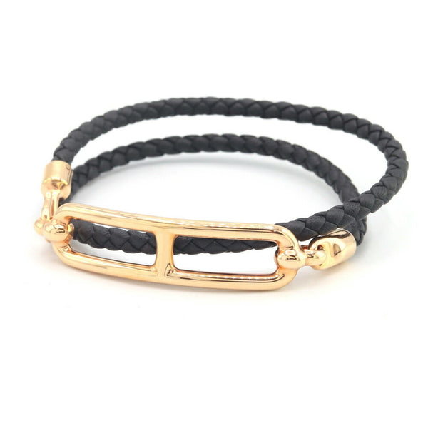 Hermès Luli Double Tour Bracelet H071727 Black Leather and Metal Women\'s HERMES
