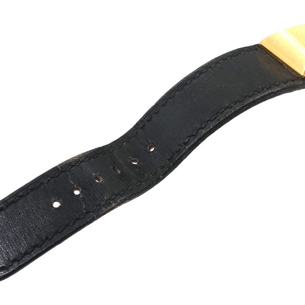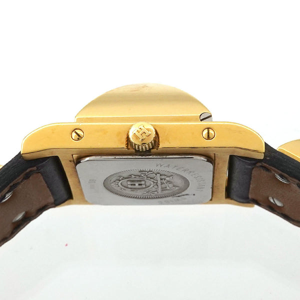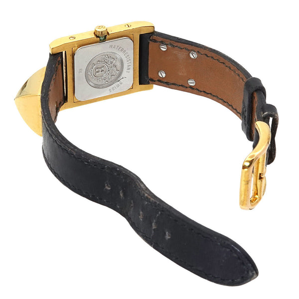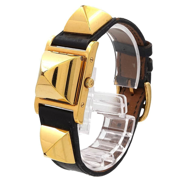 Hermès Medor Women\'s Pyramid Gold Stud Watch in White and Black Leather with Quartz Movement