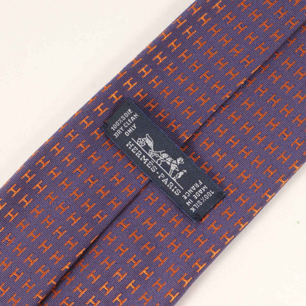 HERMES Men\'s Faconnee H Jacquard Silk Tie in Purple and Orange (K4613)