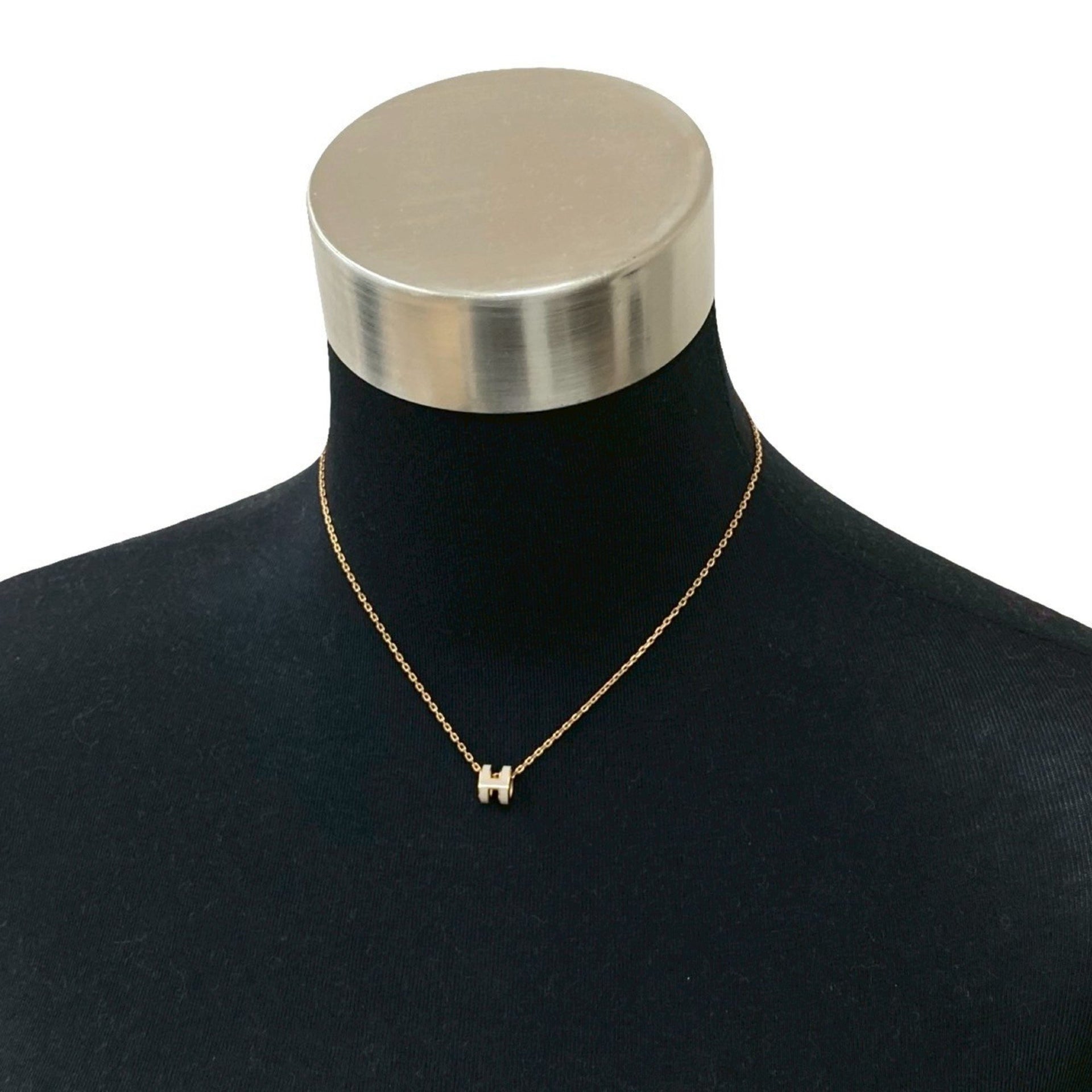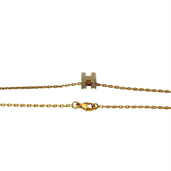 HERMES Mini Pop H Logo Motif Necklace Pendant Accessory Gold Gray 24294