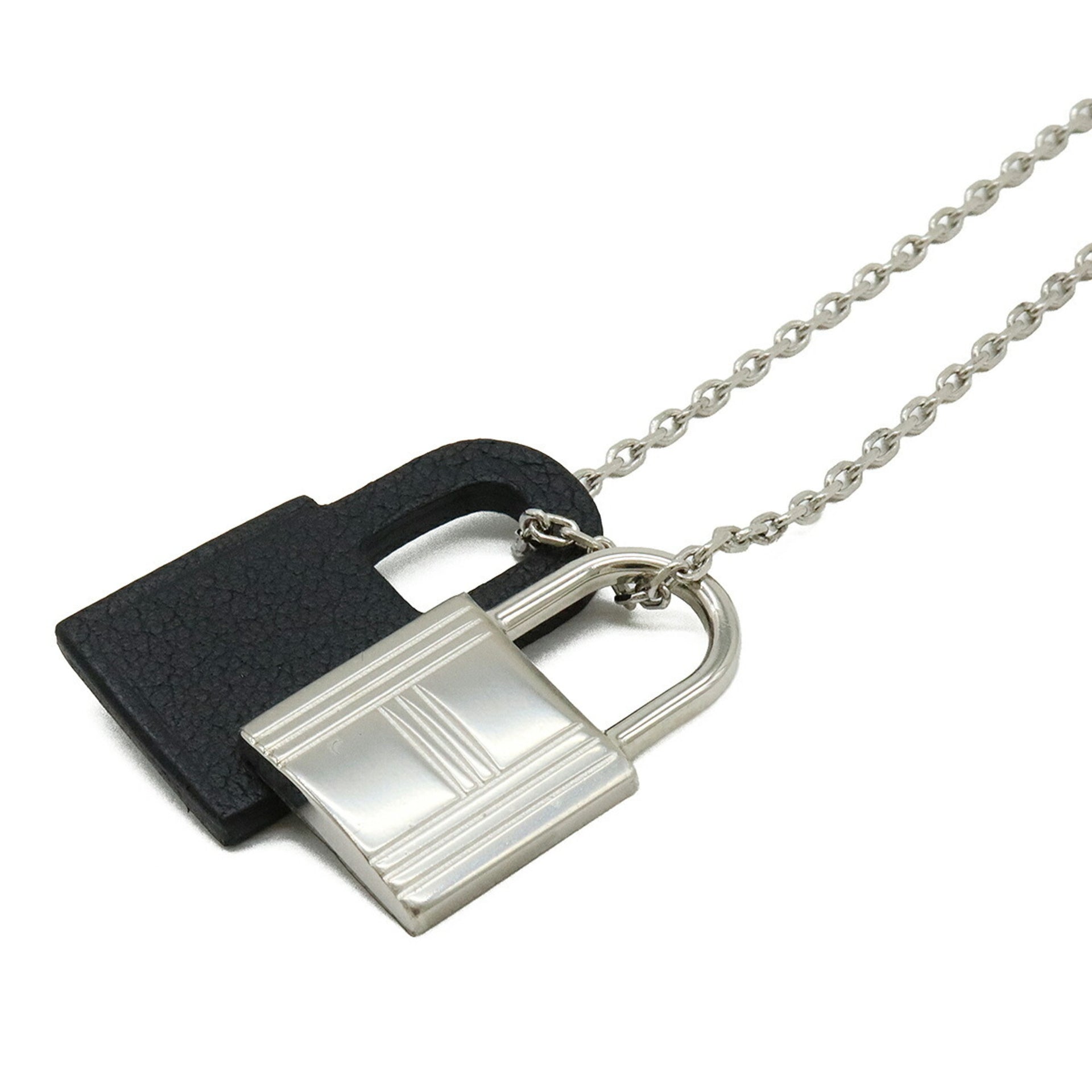 HERMES O\'Kelly PM Padlock Pendant Necklace Metal Leather Black D Engraved