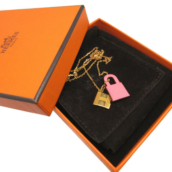 Hermes O\'Kelly PM Veau Swift D Stamp Rose Azalee Gold Necklace 0524HERMES