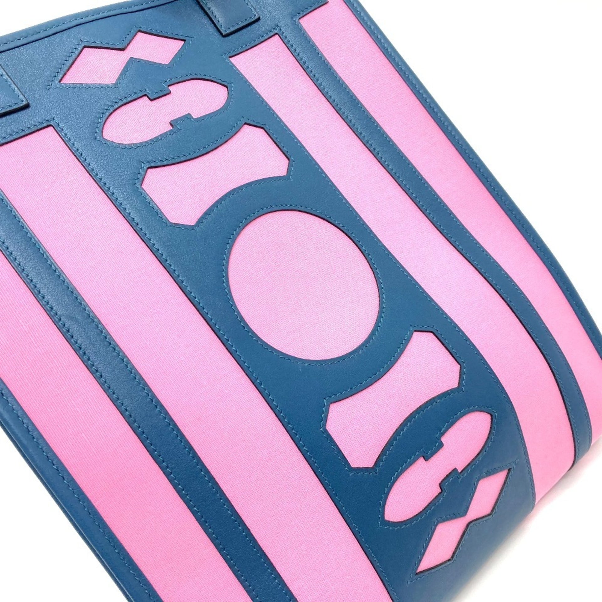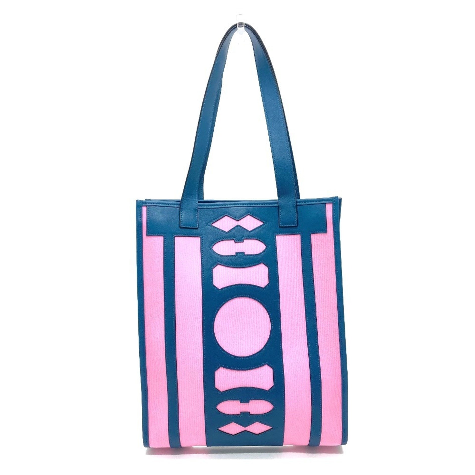 HERMES Petit H Dreamcatcher Shoulder Tote Bag in Leather/Canvas, Navy and Pink