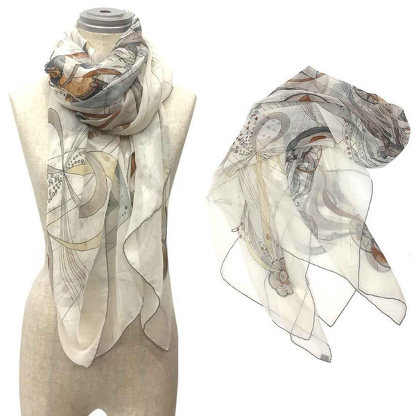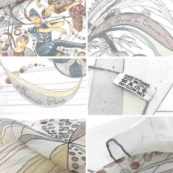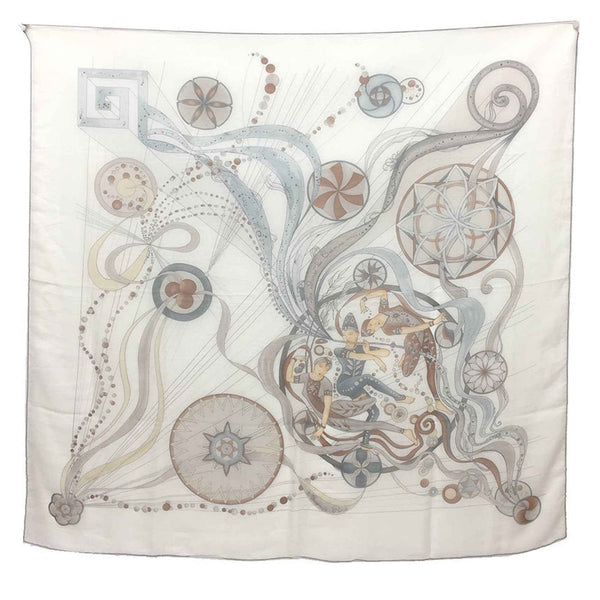 HERMES Shawl Carré 140 Scarf Silk Muslin \"La Danse du Cosmos\" White 100%