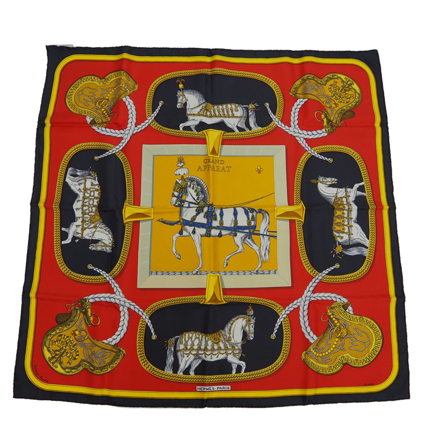 Hermes Silk Scarf Black,Red Color