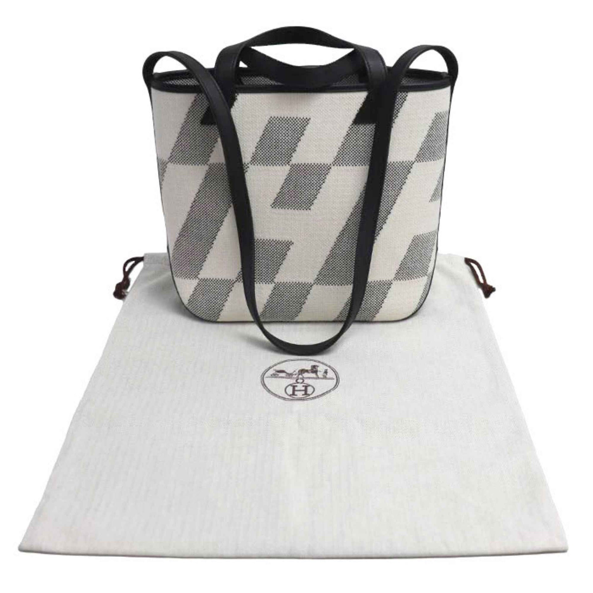 HERMES Toile H Ambié PM 2-Way Shoulder Bag in White and Black for Women