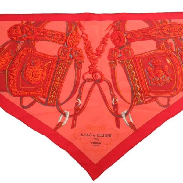 Hermes Triangle BRIDES de GALA par Pointou Silk Multicolor 0187 Red Scarf Muffler HERMES
