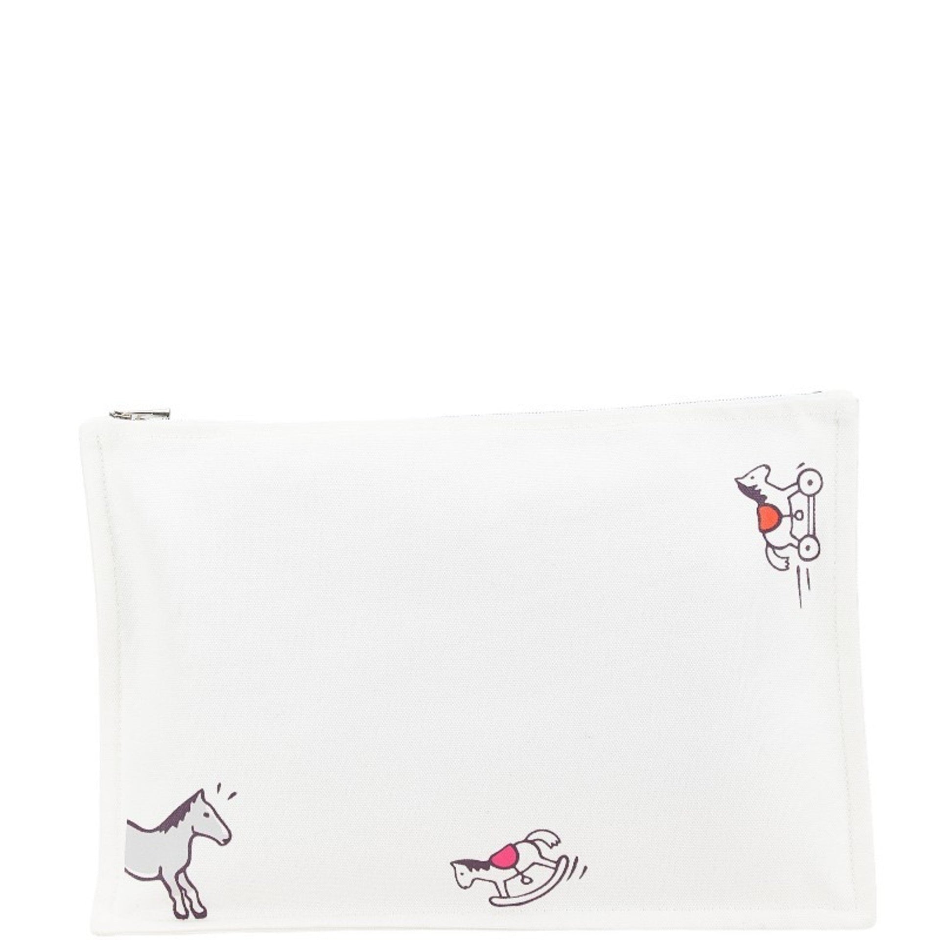 Hermes Truss Flat Adada GM Wooden Horse Pouch White Red Multicolor Canvas Women\'s HERMES