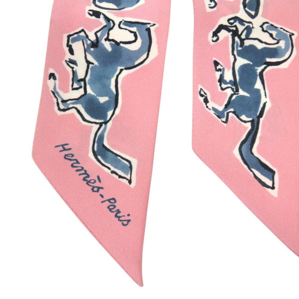 Hermès Twilly Chevaux en Liberte Silk Pink Scarf Muffler 1292HERMES