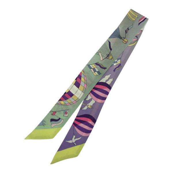 HERMES Twilly \"Madness of the Skies\" Multicolor Silk Scarf Ribbon for Women