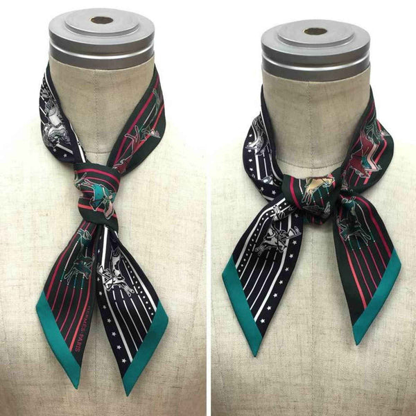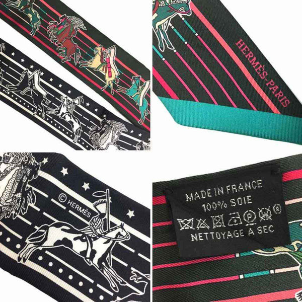 HERMES Twilly Pani La Shar Pawnee Chief of the Scarf Black Vert Fonc/Rose Vif/Noir 100% Silk Hermes aq8492
