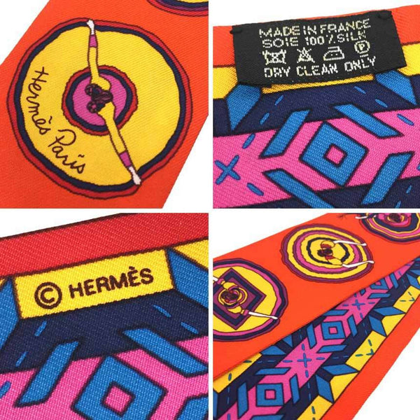 HERMES Twilly Scarf Muffler Balles du mexique Beautiful Mexico Mexican Dance Orange 100% Silk Hermes