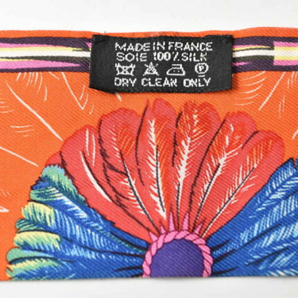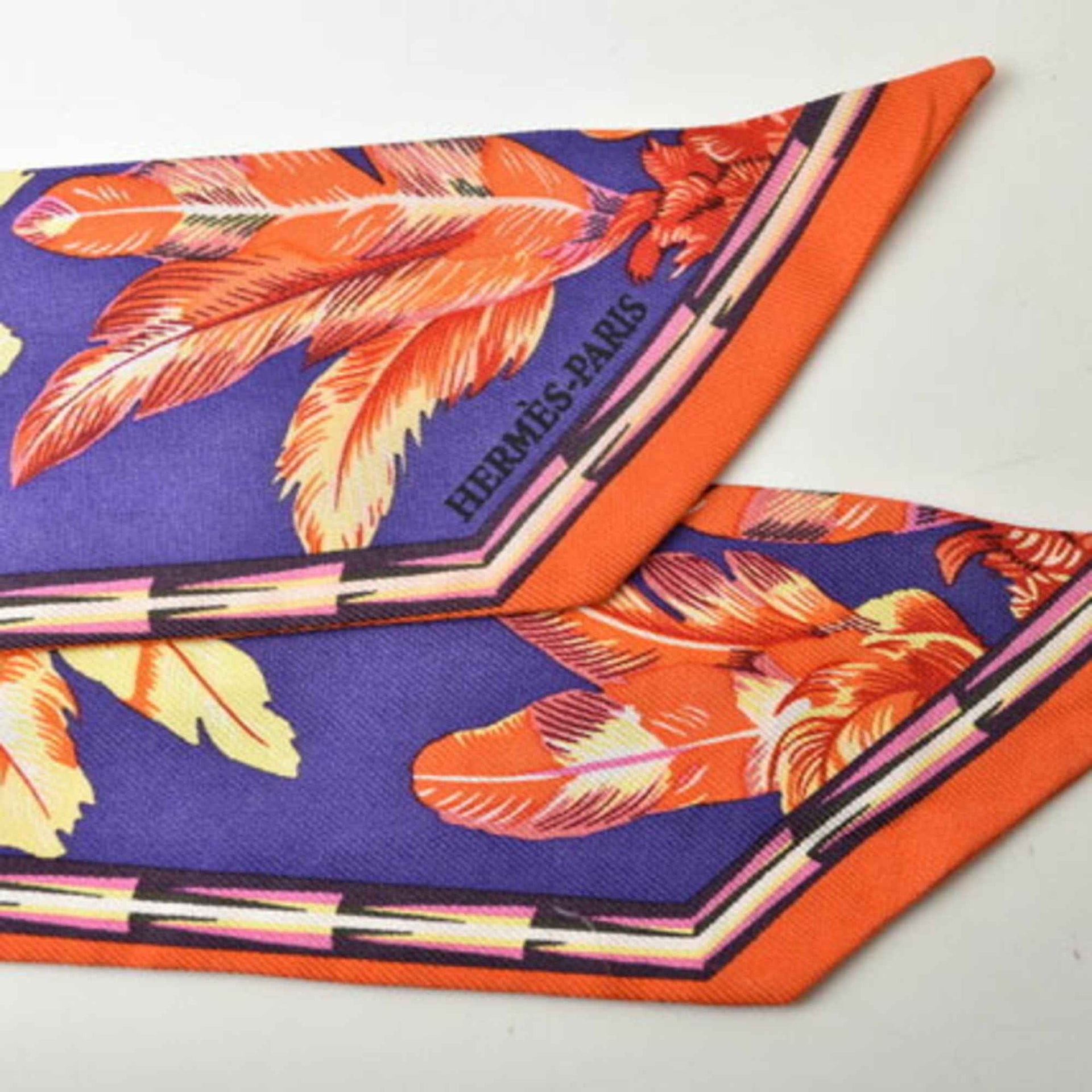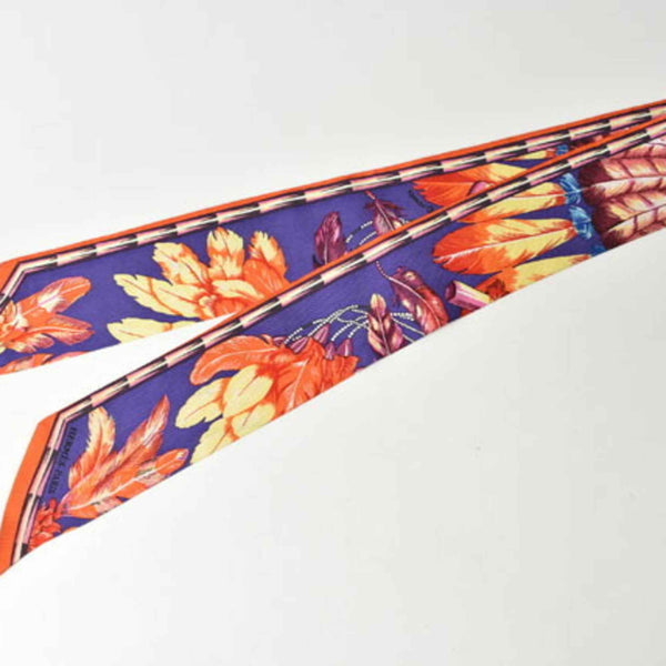 Hermes Twilly Scarf Muffler HERMES Silk Twill Feather Motif Purple Orange Multi
