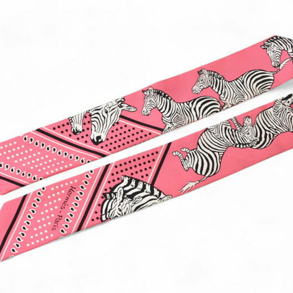 Hermes Twilly Scarf Muffler HERMES Silk Twill LES ZEBRES BANDANA Zebra Pink Multi