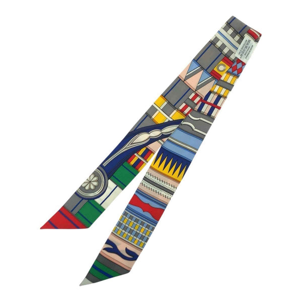 HERMES Twilly \"VOLTES ET PIROUETTES\" Multicolor Silk Scarf Ribbon for Women