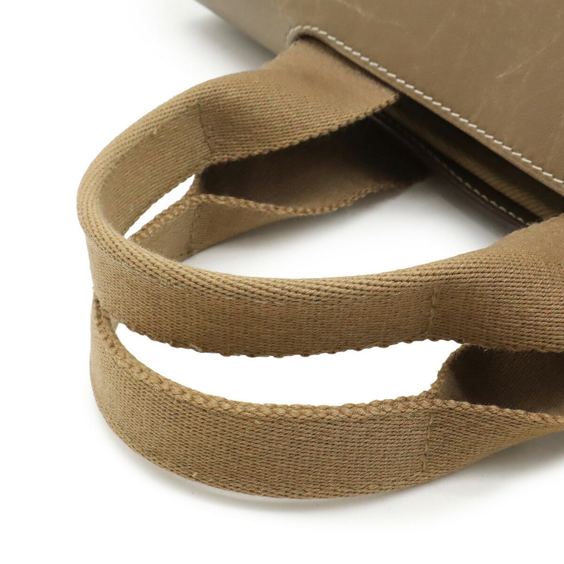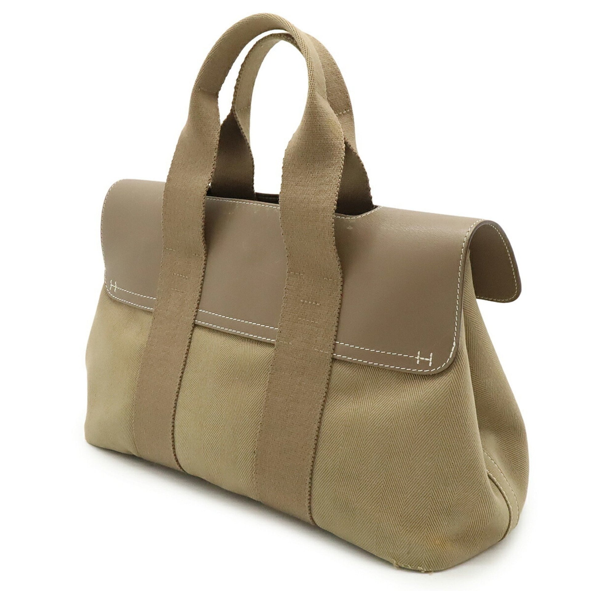 HERMES Valparaiso PM handbag tote bag in toile chevron leather and etoupe.