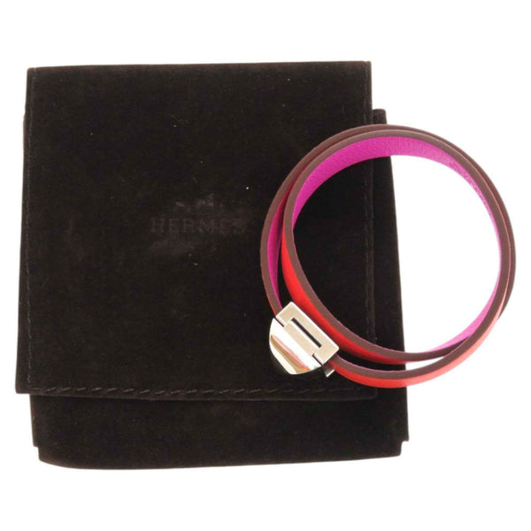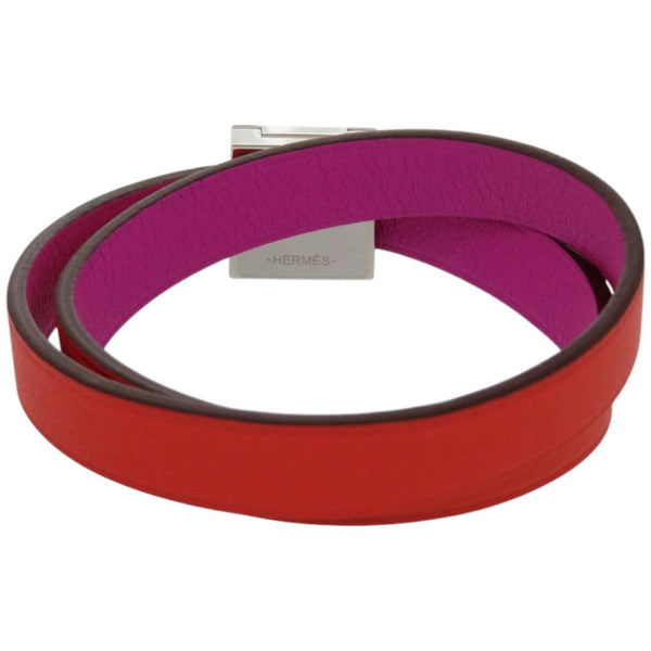 Like new Hermès Double Tour Infinie Medor leather and metal orange purple bicolor bracelet 0160 HERMES