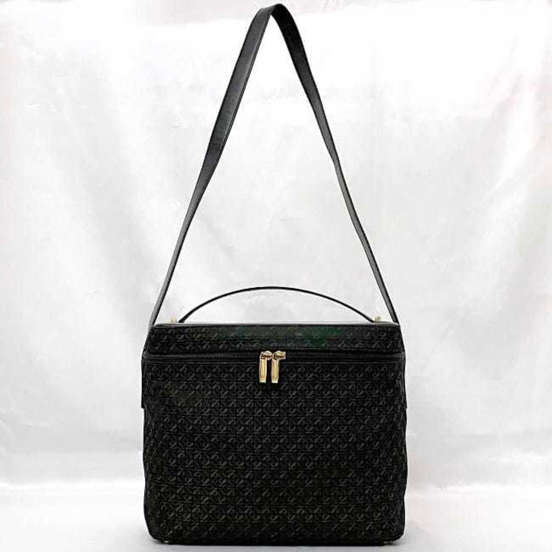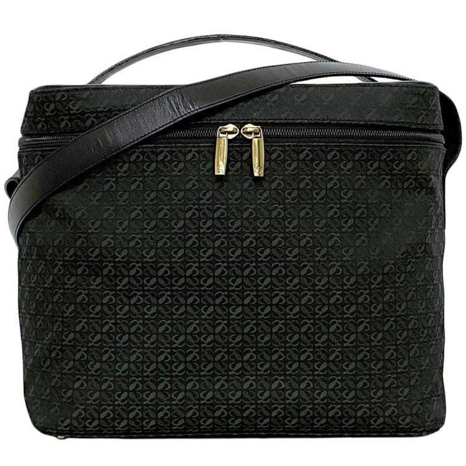 LOEWE 2way Shoulder Bag f-22506 Black Green 333.79.026 Vanity Canvas Leather Dark Makeup Boston Women\'s Men\'s