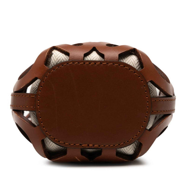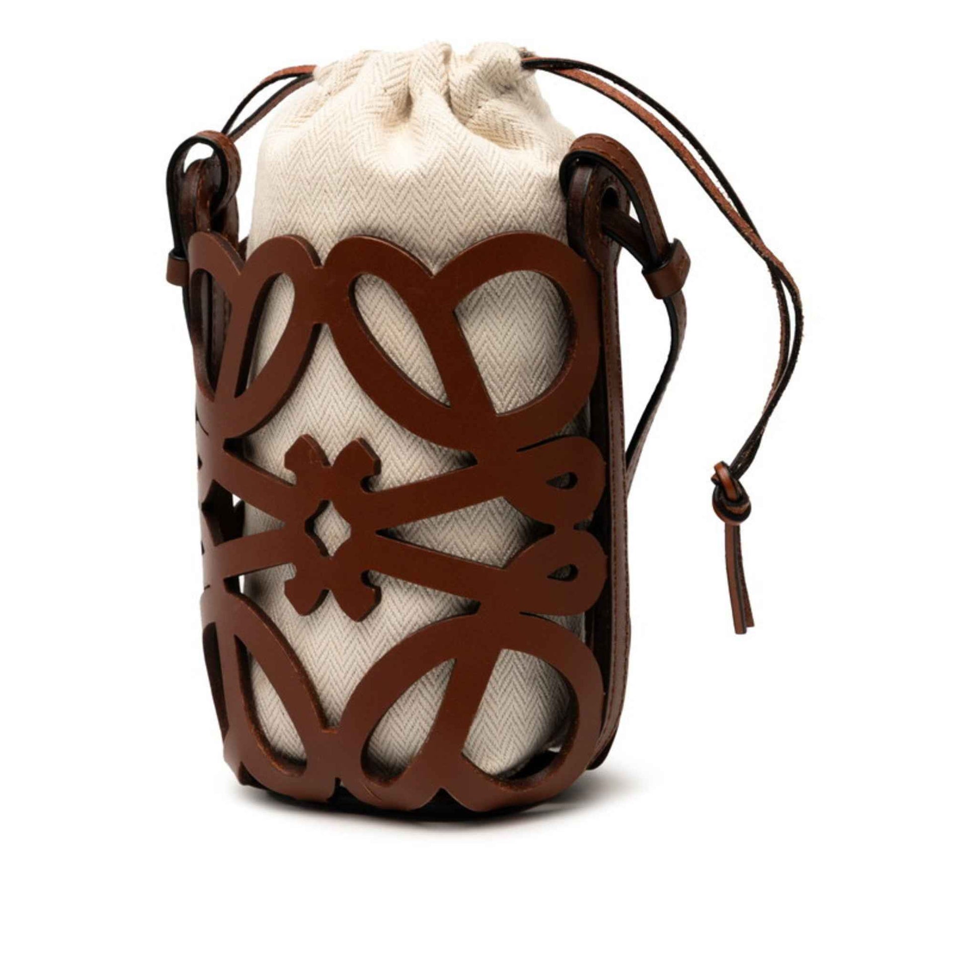 LOEWE Anagram Cutout Pocket Shoulder Bag in Brown, Beige, Leather and Canvas for Women