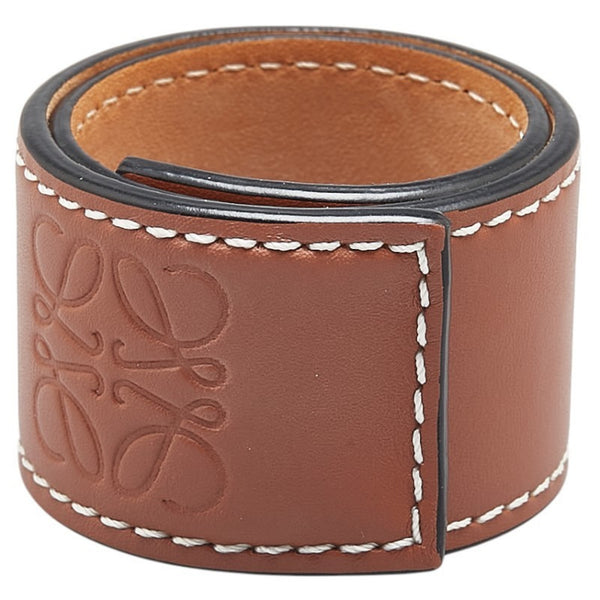 LOEWE Anagram Small Slap Bracelet in Tan and Brown Leather for Women