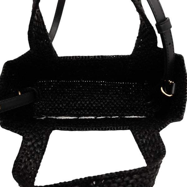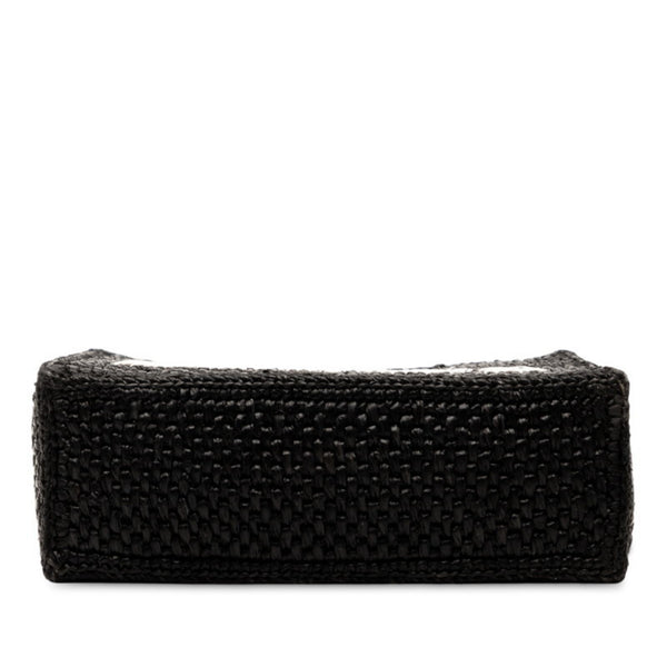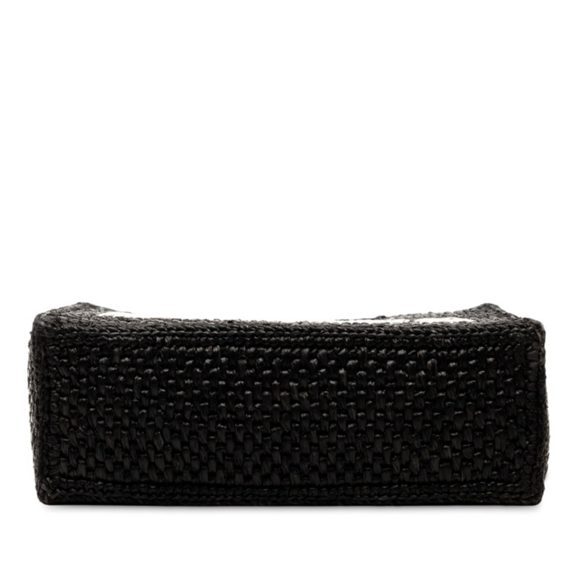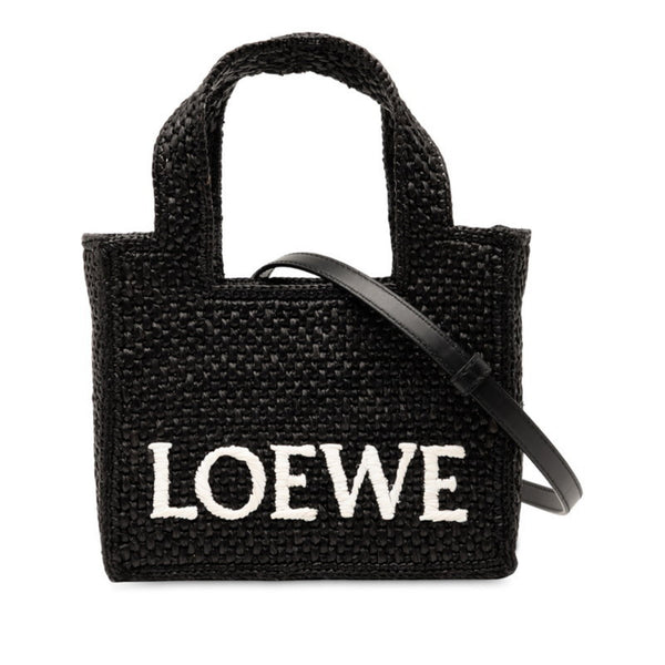 LOEWE Font Tote Mini Bag/Shoulder Bag, 2-Way, Black Raffia and Leather, Women\'s