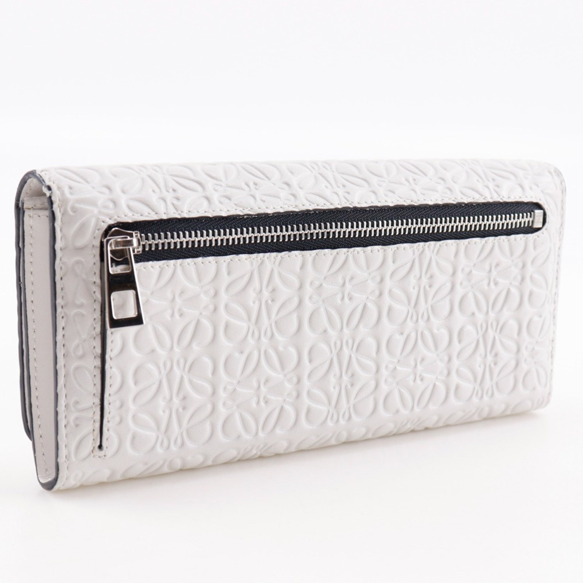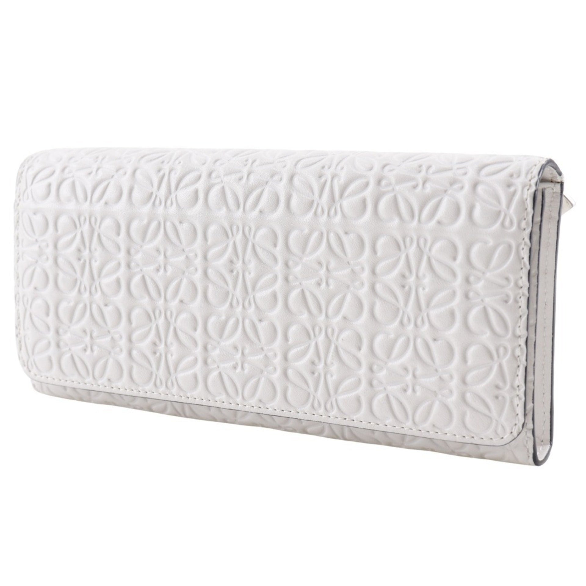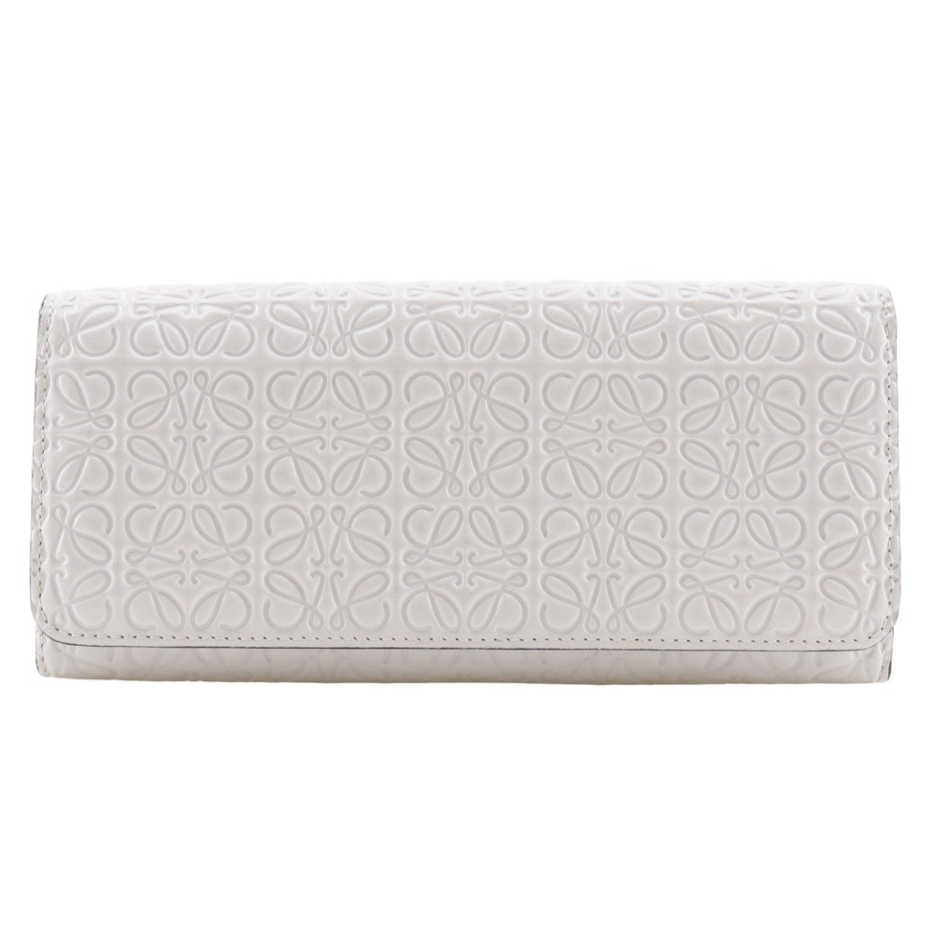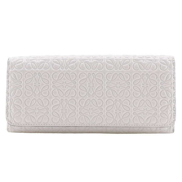 LOEWE Repeat Anagram Long Wallet Leather White Snap Button Unisex