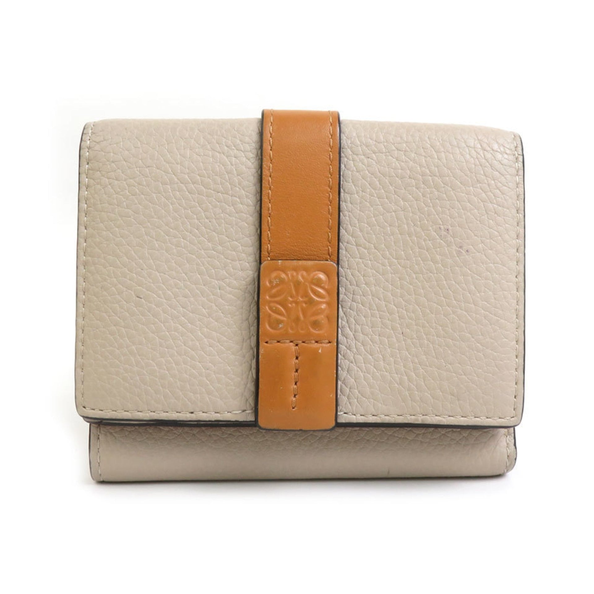 LOEWE Tri-fold Wallet Anagram Leather Greige Brown Women\'s e59700j