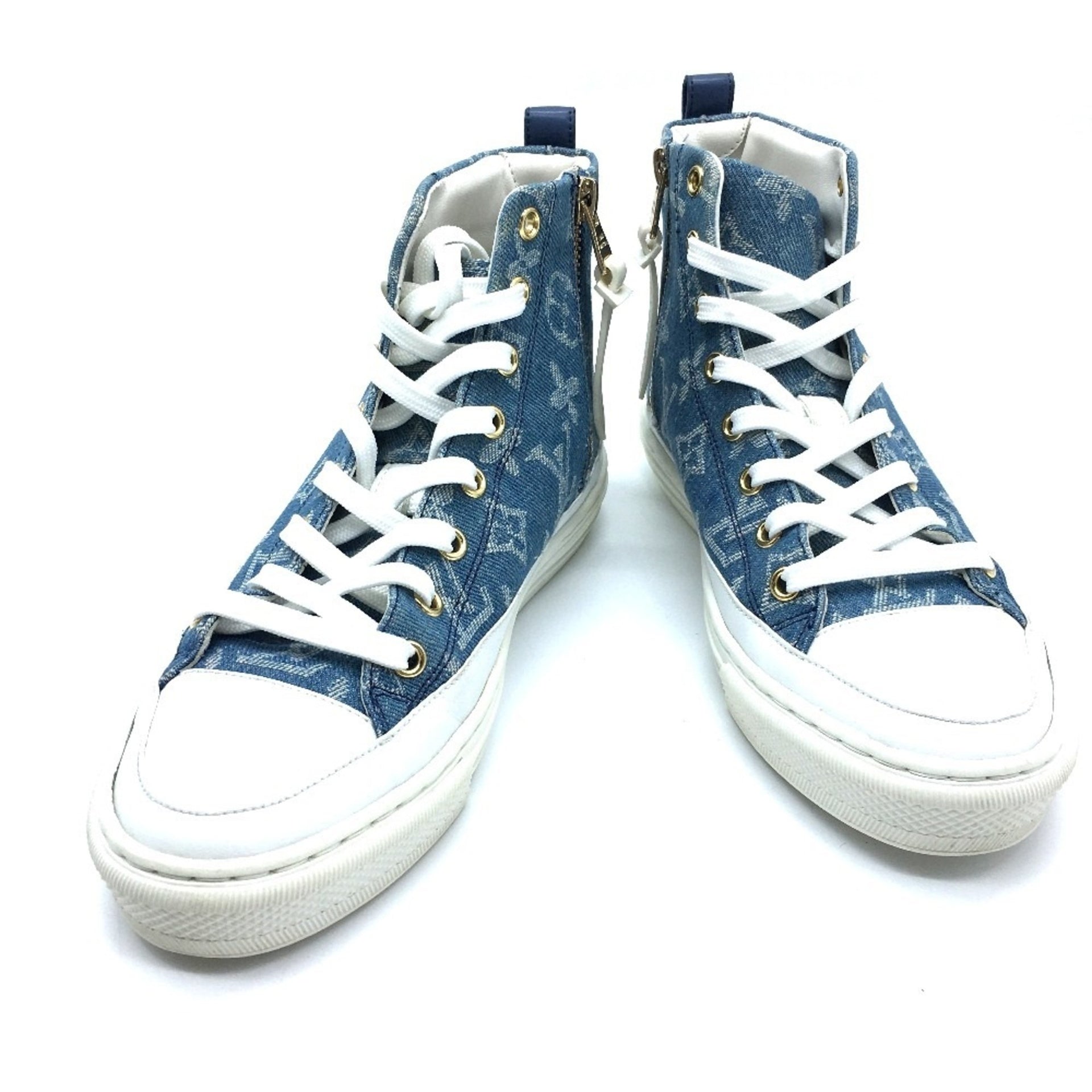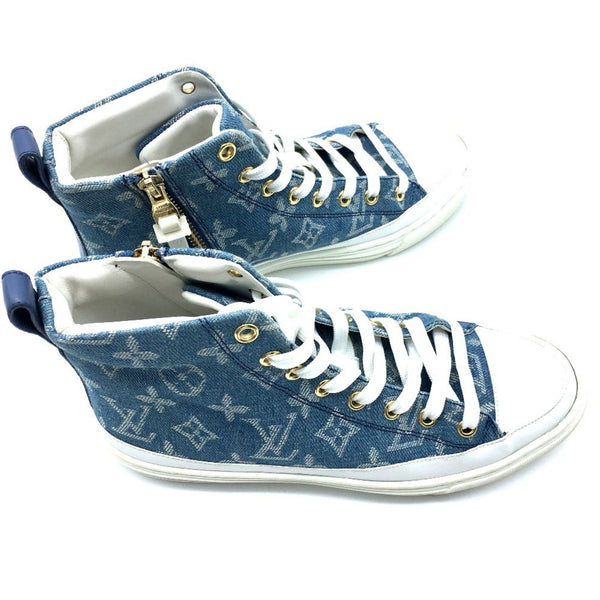 LOUIS VUITTON 1A4VT4 Monogram Denim Stellar Line Sneakers, Women\'s, Blue/White