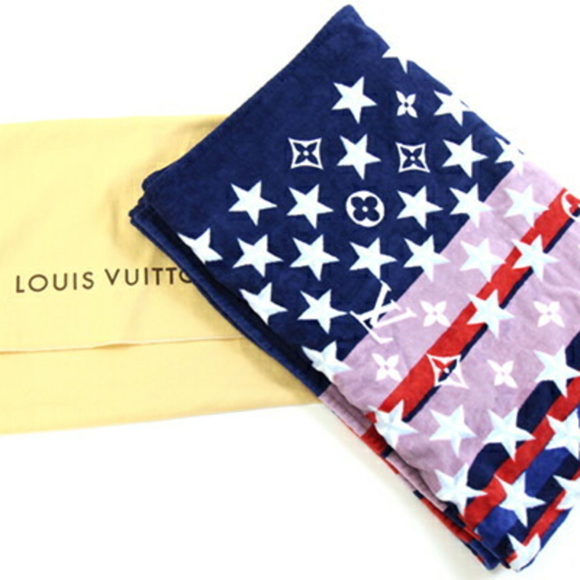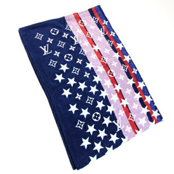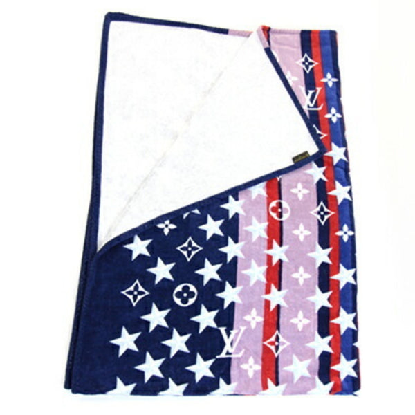 Louis Vuitton Beach Towel Navy Red 100% Cotton Blanket Bath Large Lap Star LOUIS VUITTON