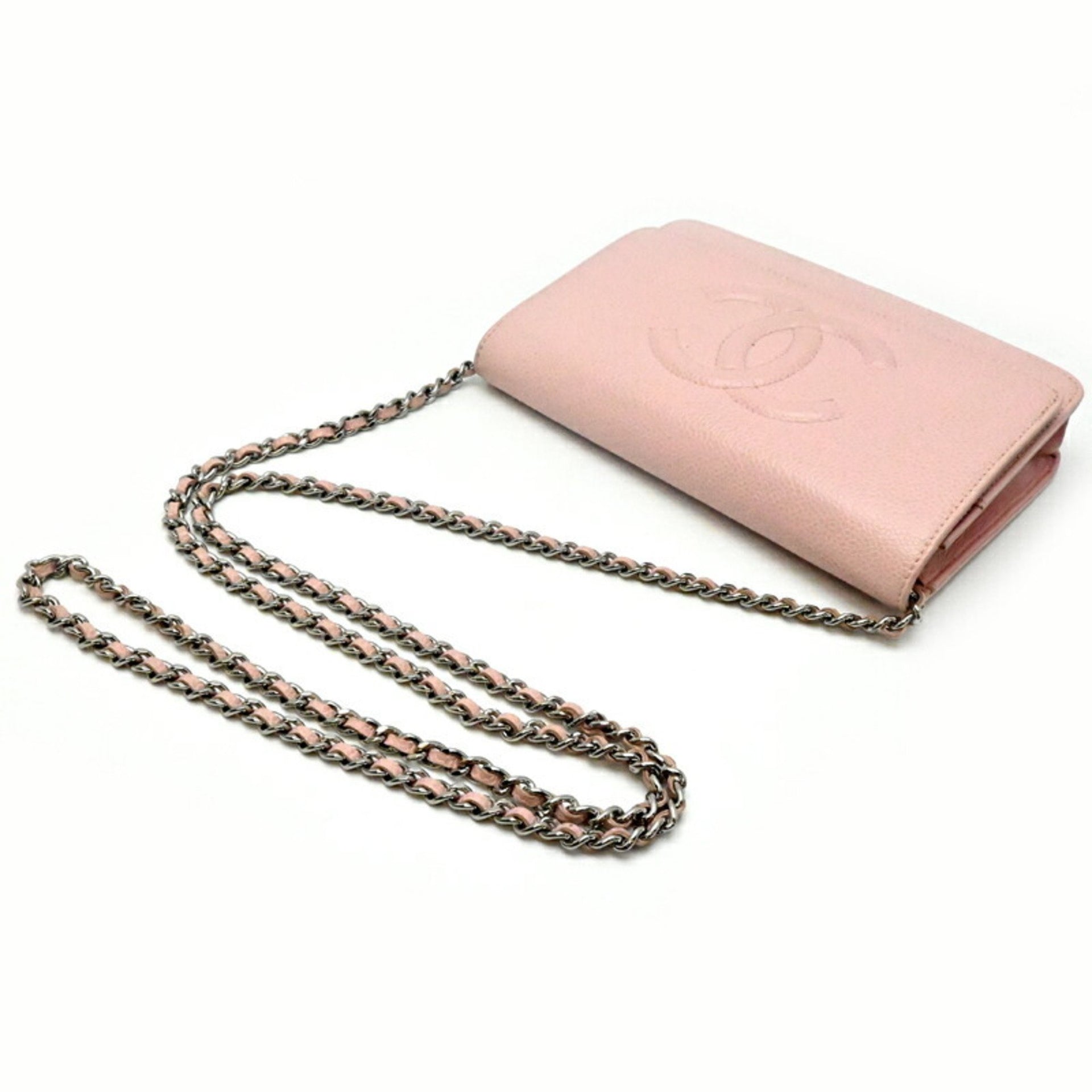 Louis Vuitton Coco Mark Chain Wallet Women\'s Shoulder Bag 8654 Caviar Skin Pink