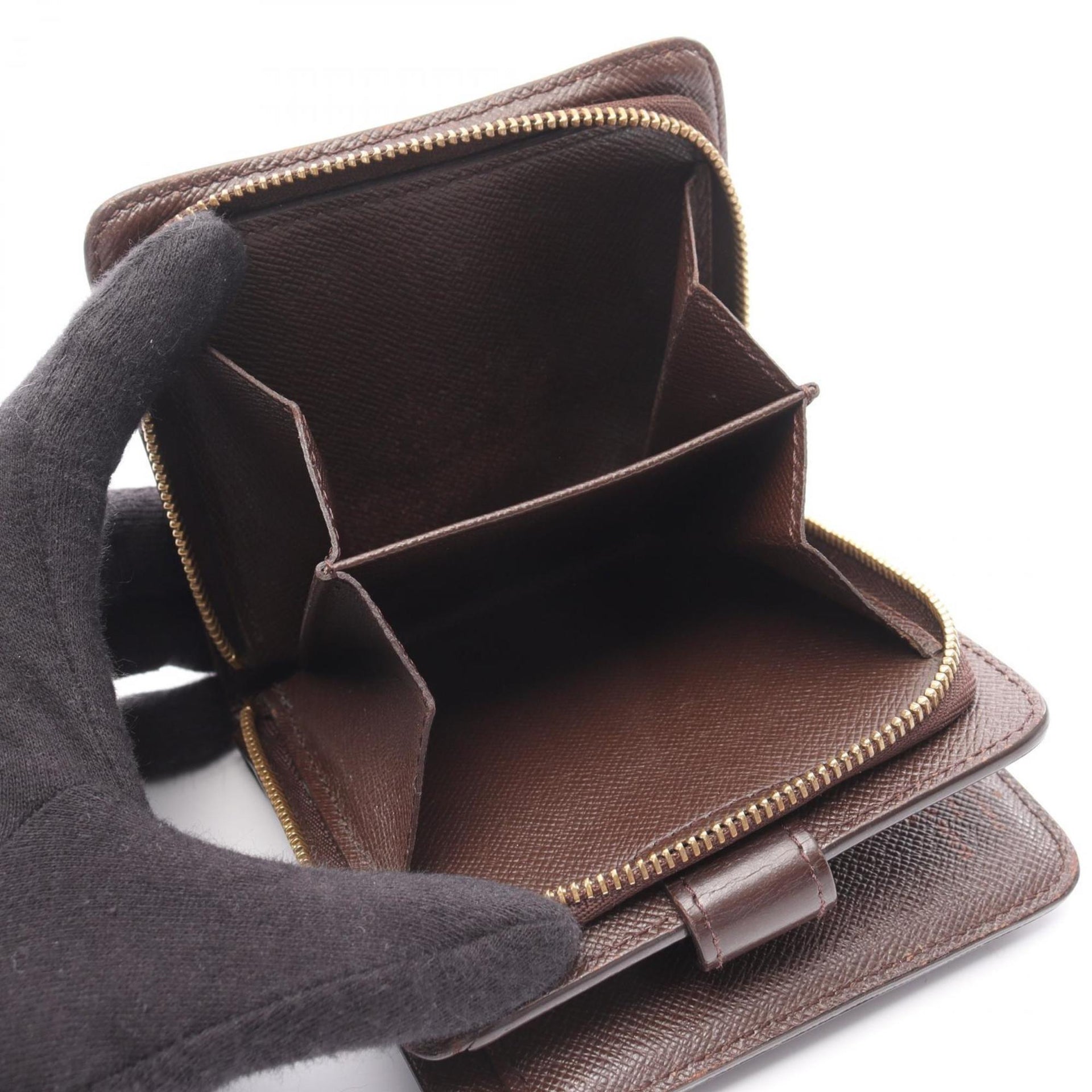 Louis Vuitton Compact Zip Bifold Wallet, Coated Canvas and Leather with Damier Print, Women\'s, Brown, N61668