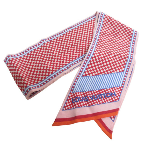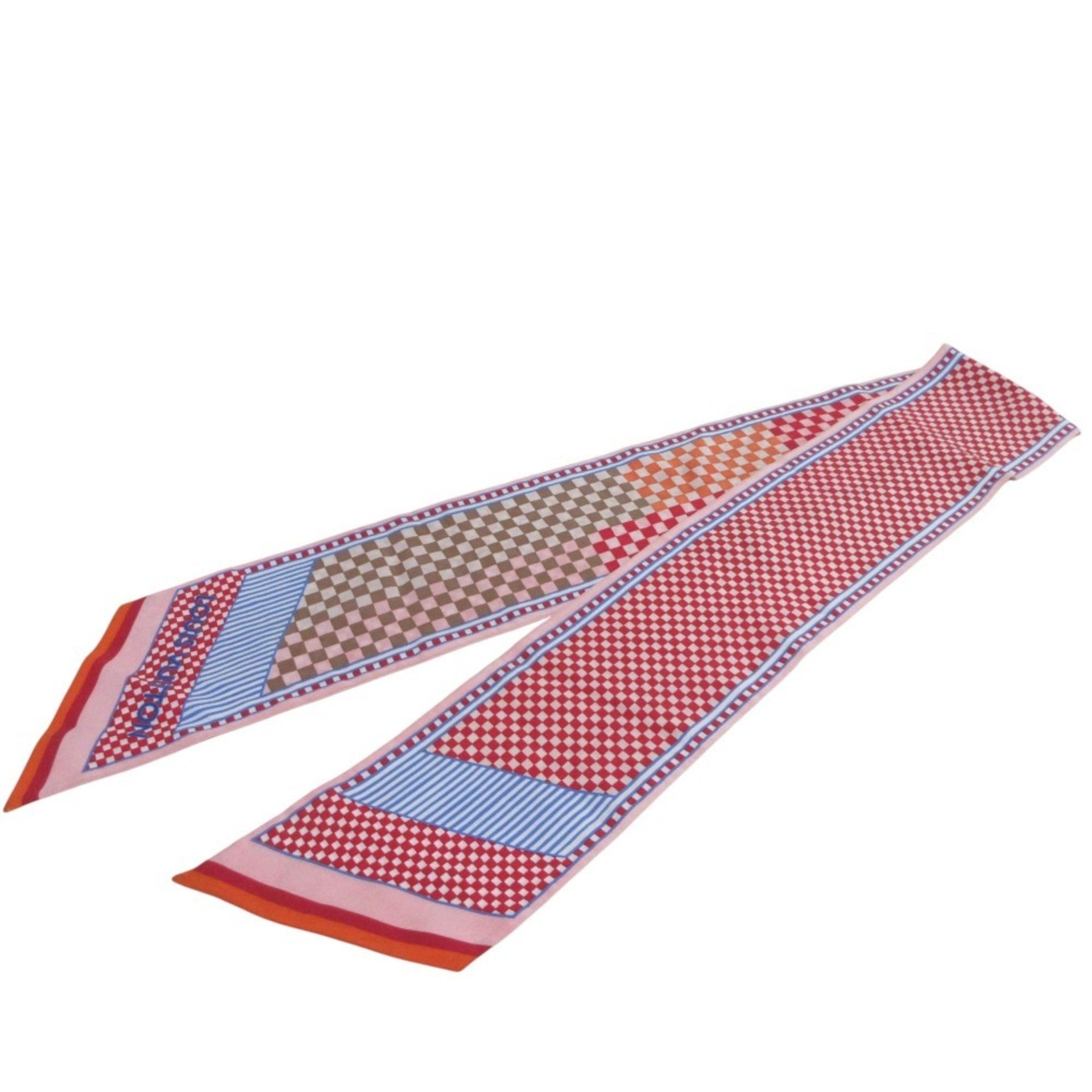 LOUIS VUITTON Damier Bandeau Aquarelle Silk Scarf Muffler Ribbon Tie M75210 Red Women\'s