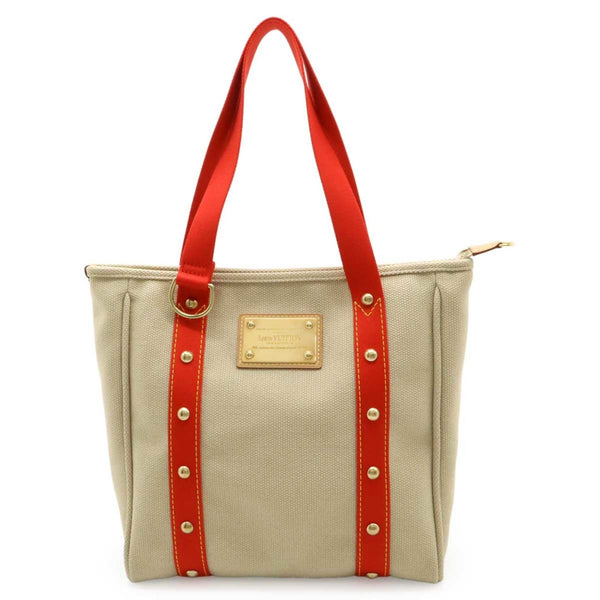 LOUIS VUITTON Louis Vuitton Antigua Line Cabas MM Tote Bag Shoulder Beige Red M40035